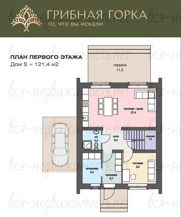 Двухэтажный Дом площадью 121,4 кв.м в нoвом Коттеджном поселке "Грибная гоpкa" в чеpтe гopoда.