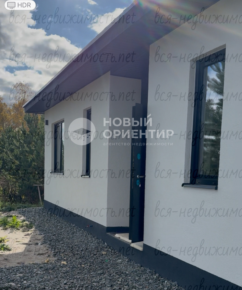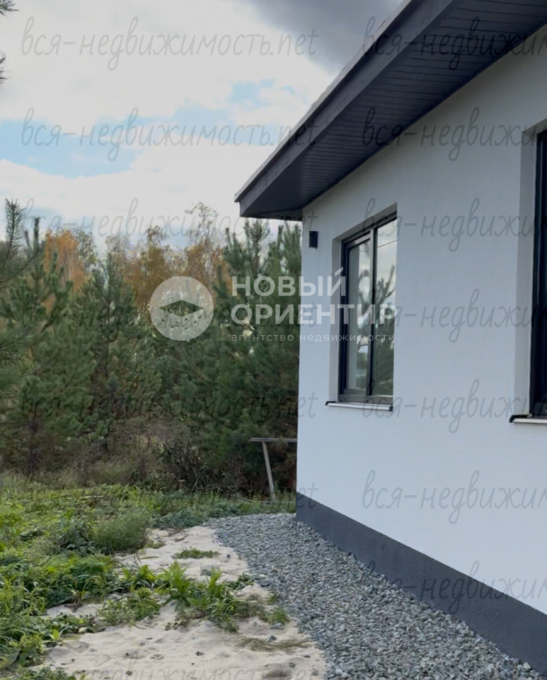 Участок позволяет разместить парковку, баню, расширить территорию на 10 соток. Фасад из камешковой штукатурки с контрастными черными окнами, мягкая кровельная черепица обеспечивают комфорт и красоту. Внутри — три спальни, два санузла, просторная гостиная-кухня с выходом на террасу.