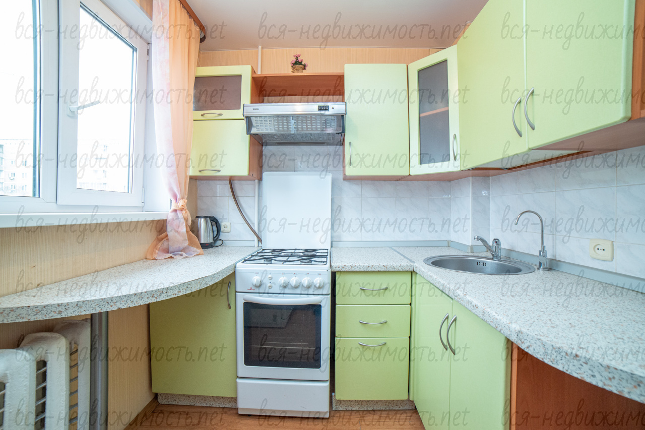 В квартире остается кухонный гарнитур, встроенная мебель.