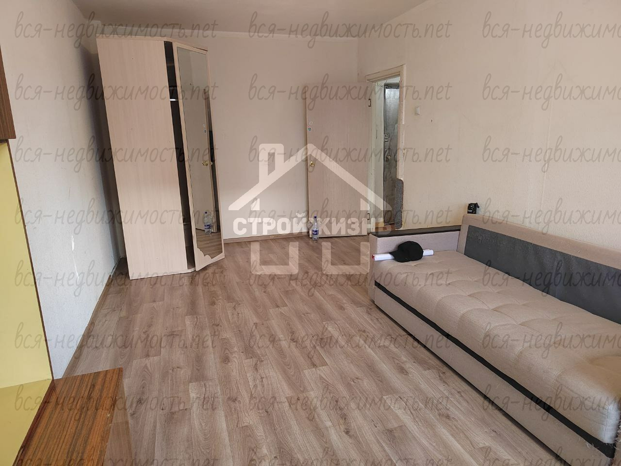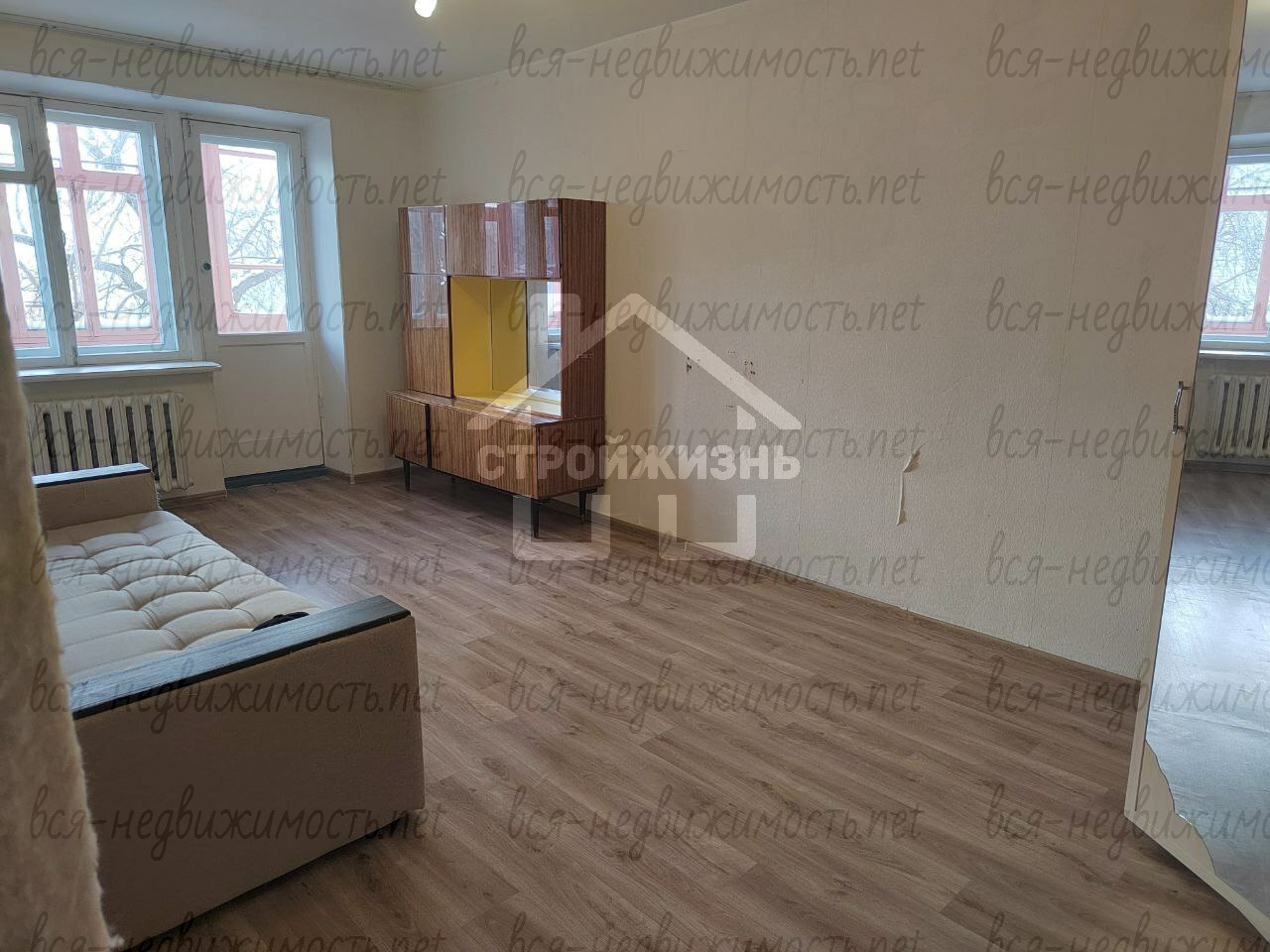 Просторная жилая комната с балконом, есть гардеробная комната для верхней одежды.