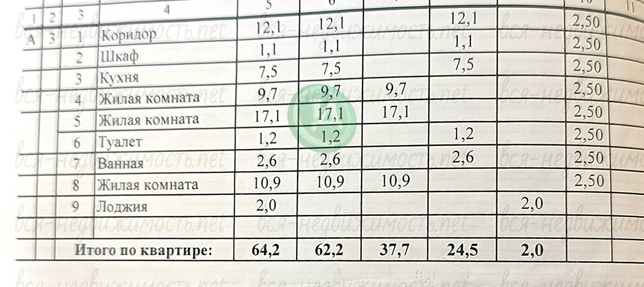 * Общая площадь: 64,2 кв. м