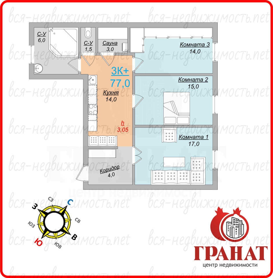 | Санузел: | Раздельный |
