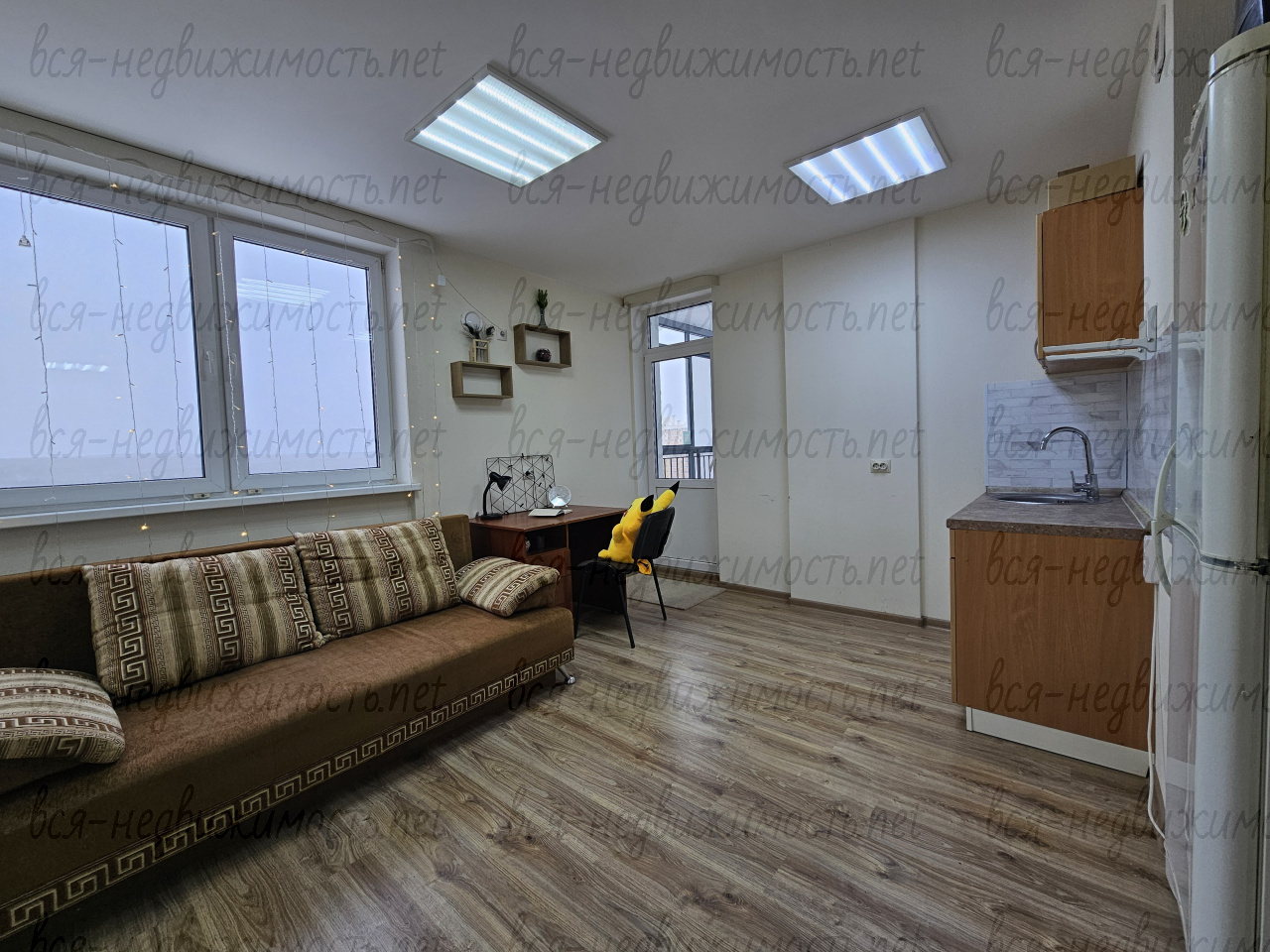 Хорошая квартира студия на два окна. Состояние приятное, отличное естественное освещение в квартире за счет двух окон.