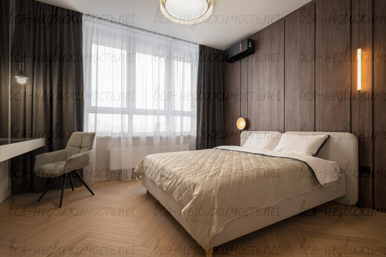 Комнаты оборудованы гардеробной, шкафами, кроватью с ортометрическим