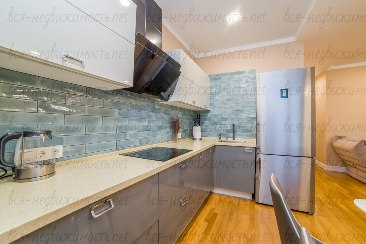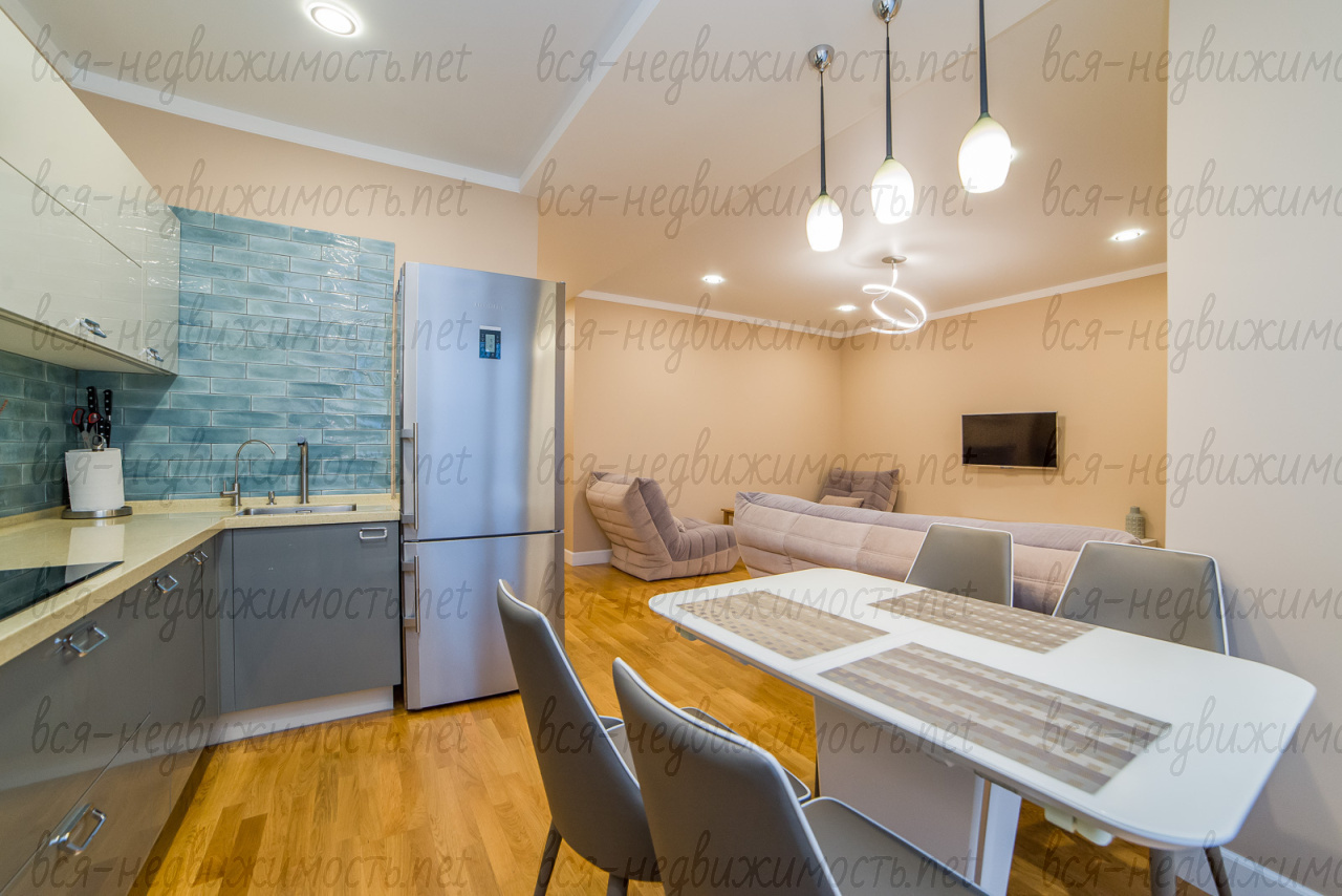 - Квартира и отделка: полностью выполнен современный ремонт, мебель и техника остается. Две просторные спальни и кухня-гостиная.