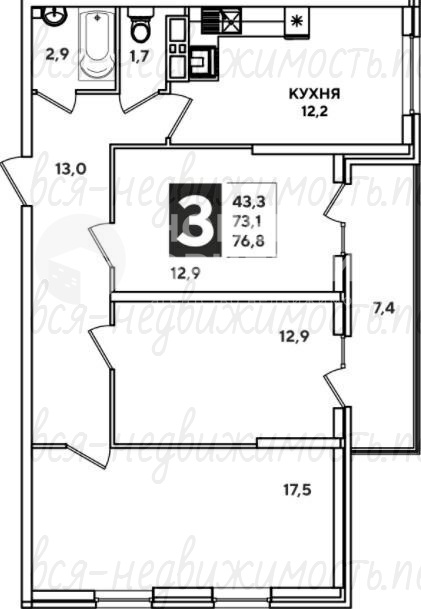 | Площадь кухни: | 13 м2 |