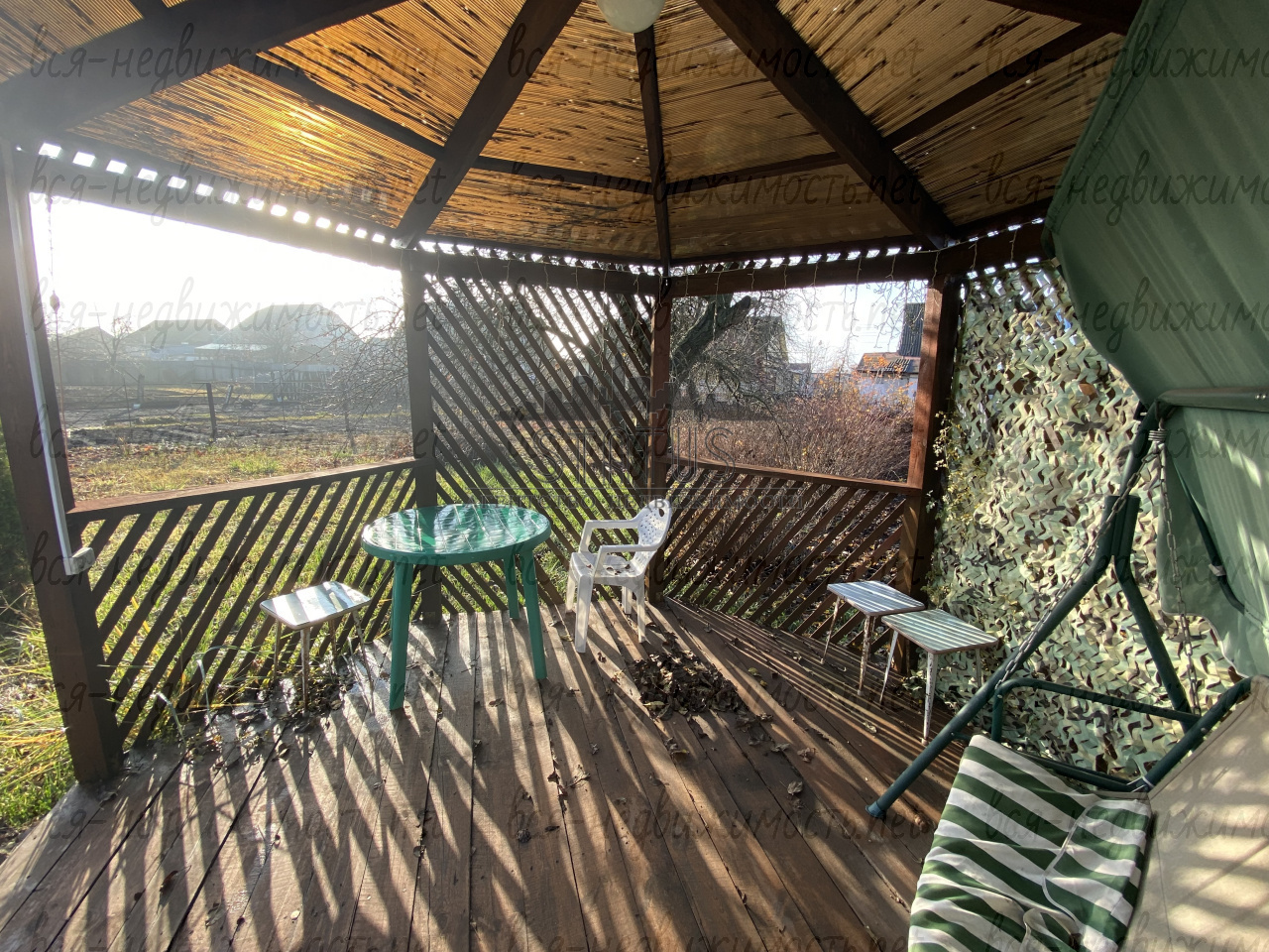 Большой, ухоженный участок с гаражом, беседкой, сараем, теплицей и множеством плодово ягодных деревьев. В беседку проведен свет, так же освещен двор. Тропинки в плитке.