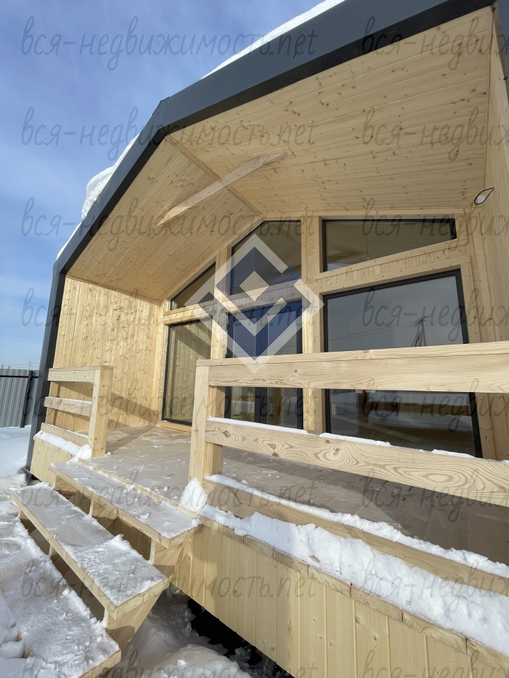 - центральный вход с панорамными окнами +4 окна ПВХ с ламинацией, выполнена обшивка всех окон