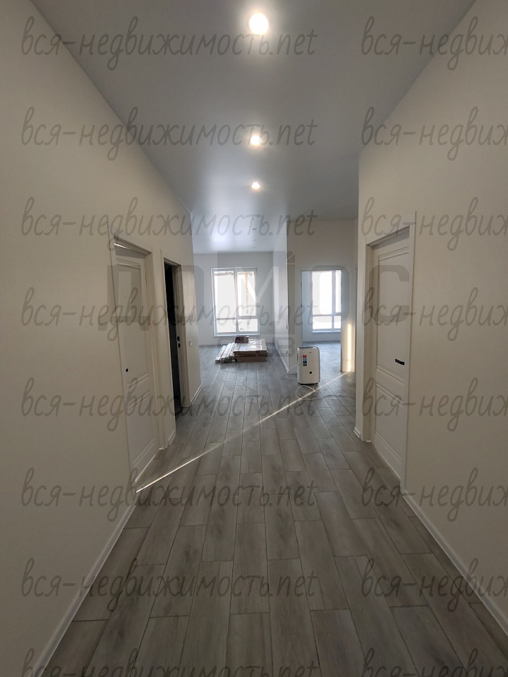 - отделка под ключ, керамогранит на полу, установлены межкомнатные двери, натяжные потолки со светильниками, в санузле плитка.