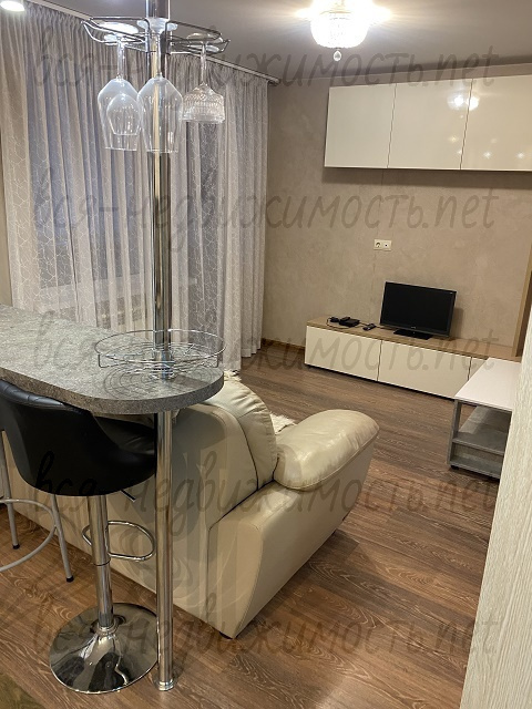 Итого в квартире 2 отдельные спальни и комфортная кухня гостиная с барной стойкой.