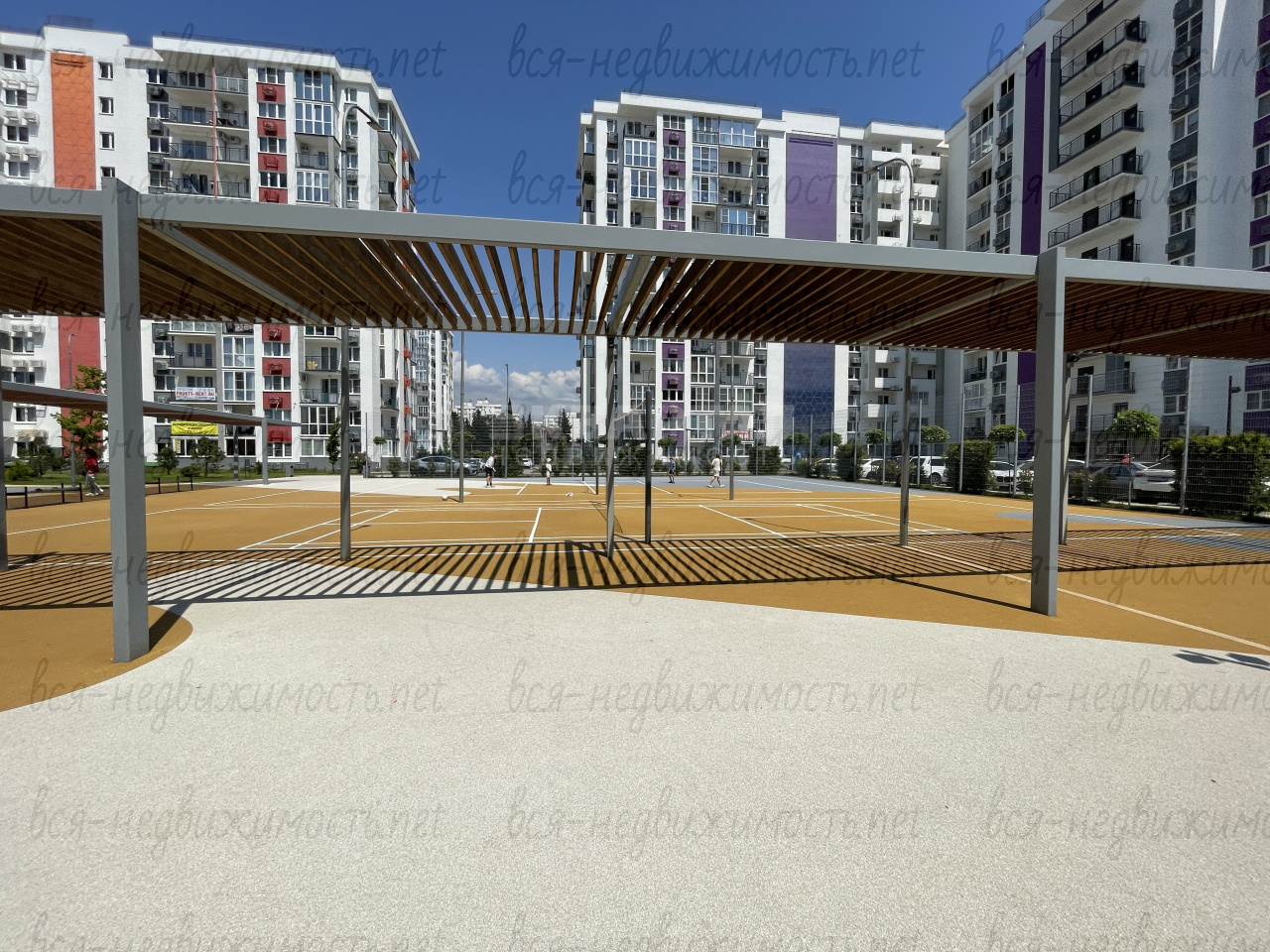 — Есть детские и спортивные площадки: волейбольная и мини-футбольная, теннисный корт, велодорожки.