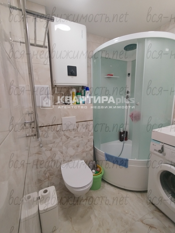 - - санузел совмещен, сантехника поменяна, душевая кабина (новая), счетчики на воду, есть электрический водонагреватель;