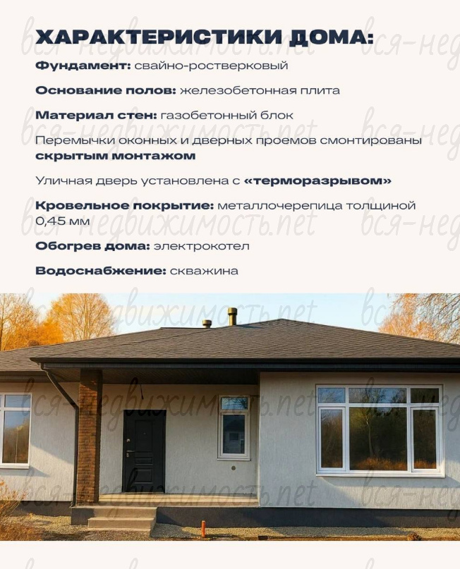 Утеплённая кровля 200 мм минеральной ваты, металлочерепица, система безопасности Энергосберегающие окна ПВХ 70 мм, мультифункциональный стеклопакет, дверь с терморазрывом