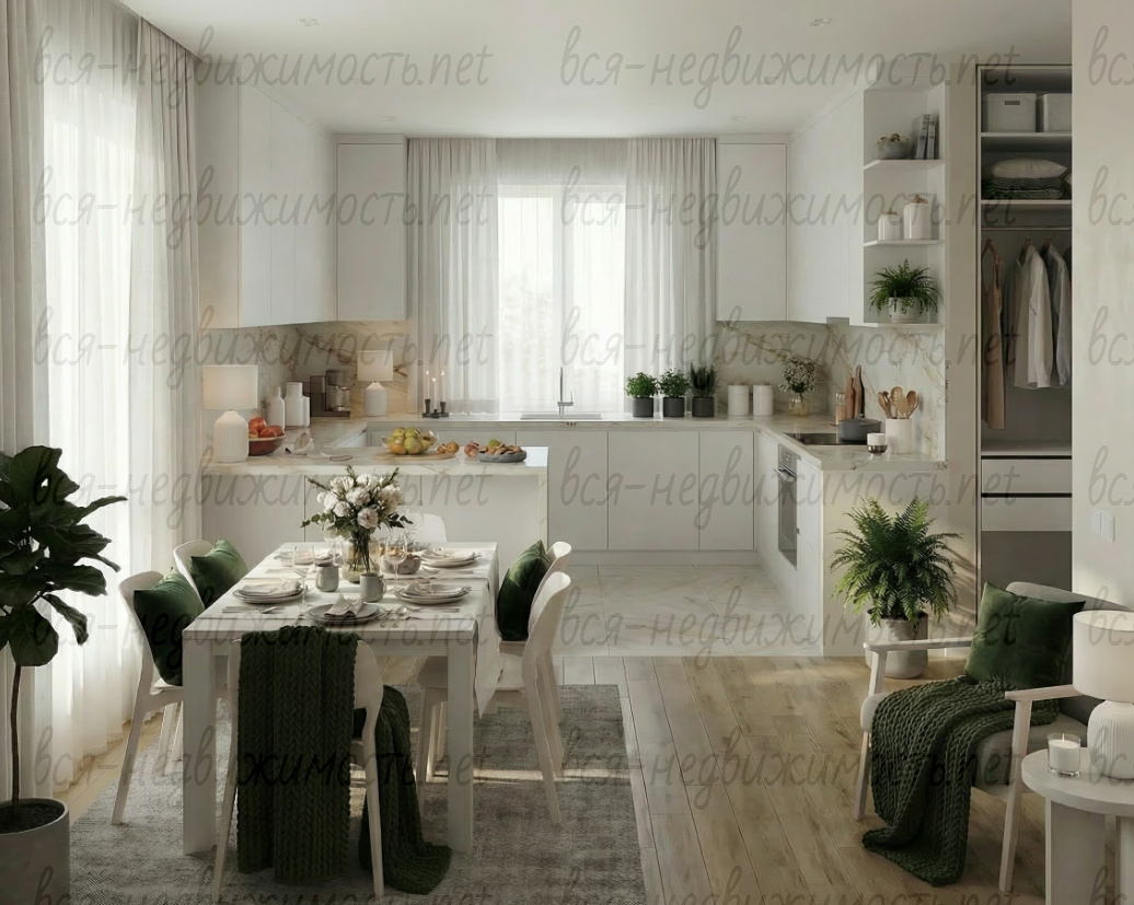 Представьте, утром вы выходите из просторной кухни-гостиной (32 м²) с