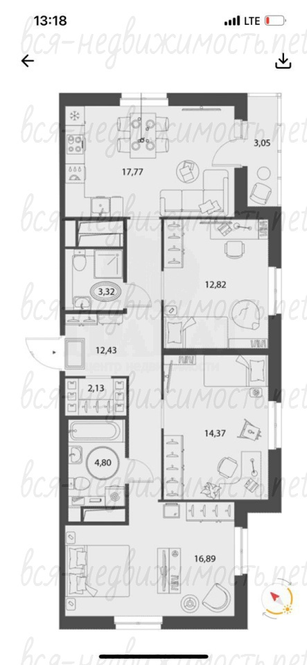 | Площадь кухни: | 18 м2 |