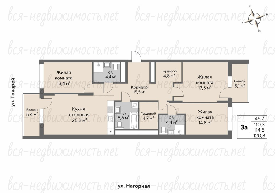 Общая площадь квартиры 114,5 кв.м, плюс две лоджии 5,1 и 5,4 кв.м. Стены в квартире выполнены из экологичного керамического кирпича и покрыты улучшенной штукатуркой с выравниванием гипсовыми смесями. Полы выполнены из цементно-песчаной стяжки с повышенной звукоизоляцией. В квартире всегда будет тепло и посторонние звуки не смогут проникнуть в ваше пространство. Окна REHAU со стильной ламинацией «под дерево». Обладают высокой шумо- и теплоизоляцией. В санузлах предусмотрено сантехническое оборудование. Высота потолков в квартире – 2,85 м.