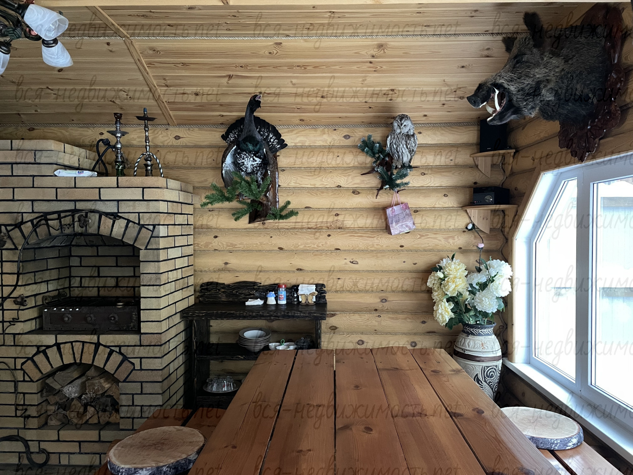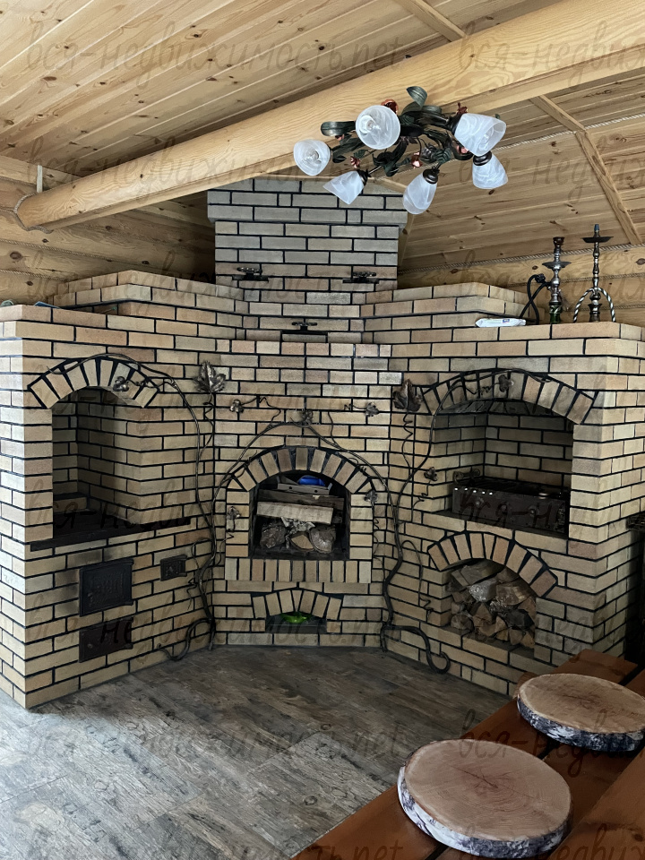 Отдельно стоящая беседка с панорамными окнами и массивной добротной печью