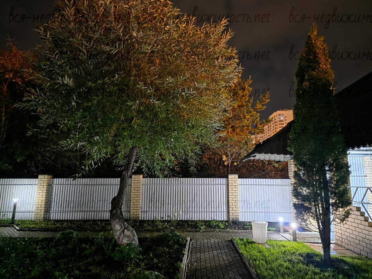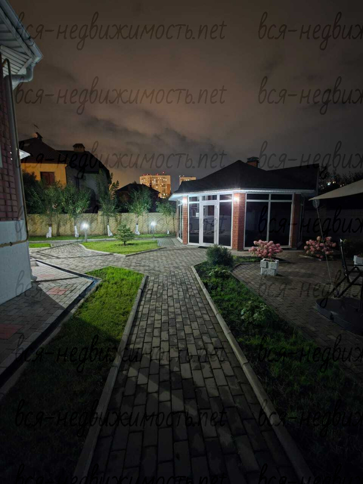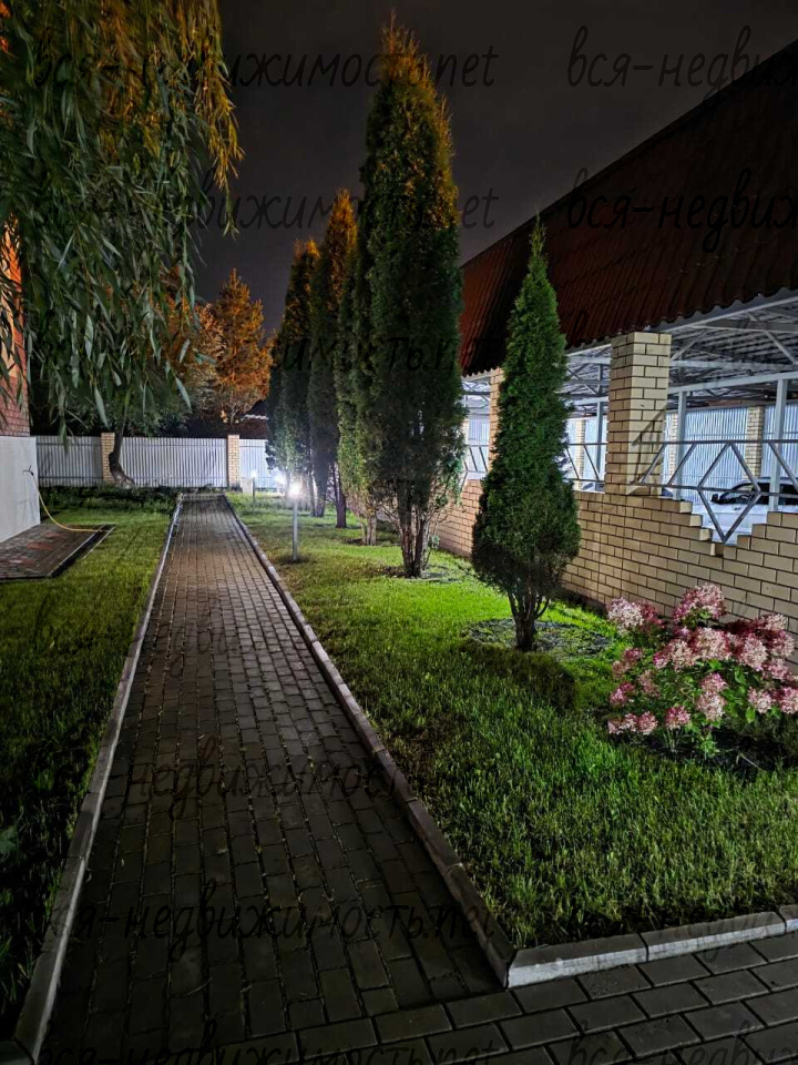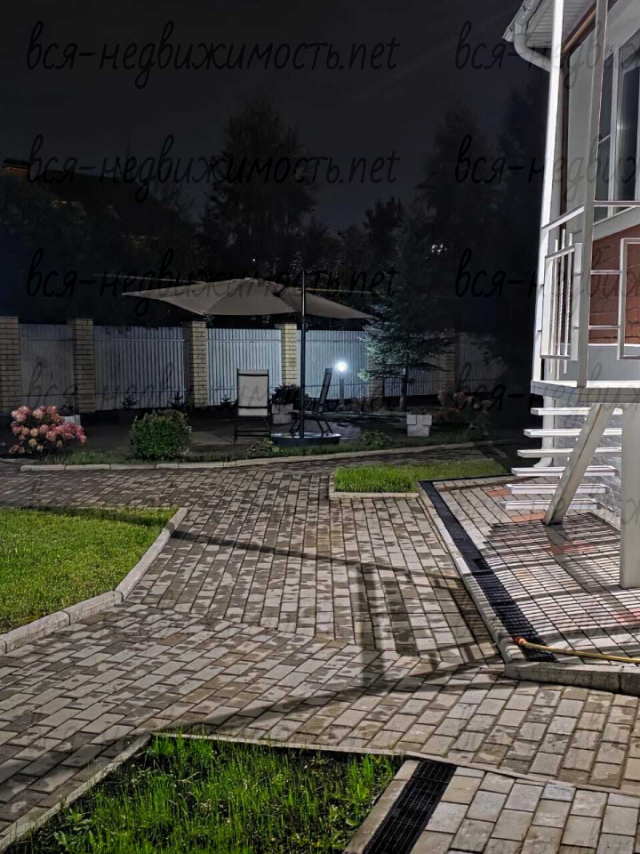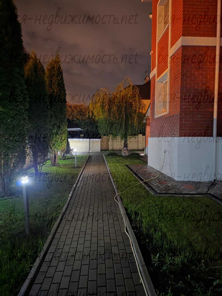 Трехэтажный коттедж расположен на участке15 соток, на котором выполнен ландшафтный дизайн, высажены ели, туи, кустарники и цветы. Дорожки и подъезд к дому выложены из плитки, имеется освещение.