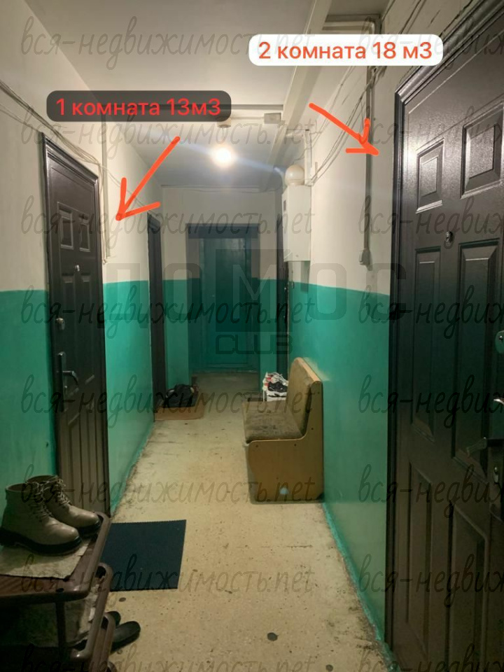 В нашей секции 7 комнат, две из которых принадлежат нам, одним хозяевам. Вторая комната - 18 кв.м. также в продаже, в ней также сделан хороший ремонт. Она расположена напротив комнаты 13 кв.м. При желании можно приобрести сразу две комнаты.
