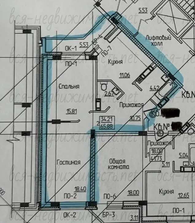- Общая S=65,8 кв.м.;