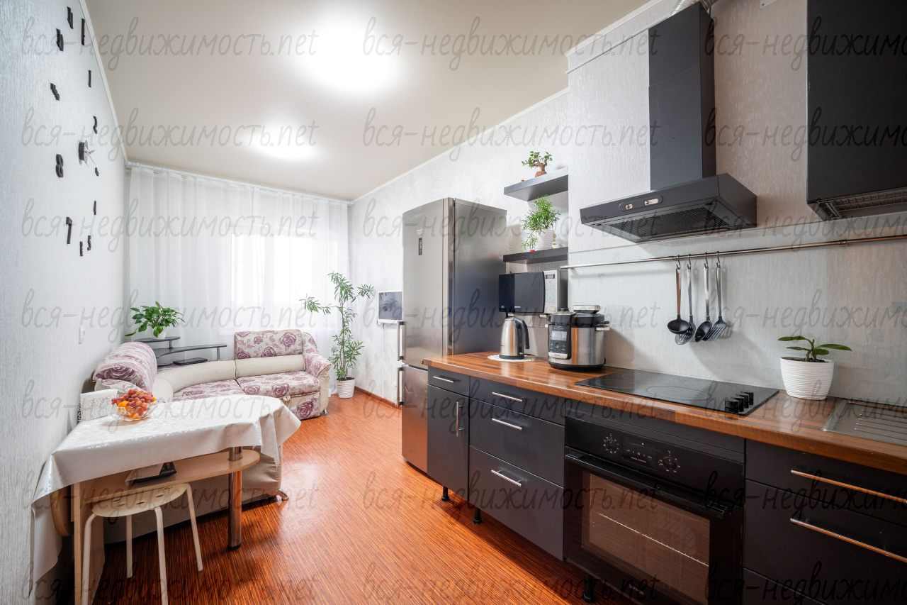 В подарок покупателю остается кухонный гарнитур, варочная плита и духовой шкаф, вытяжка, встроенный шкаф-купе.