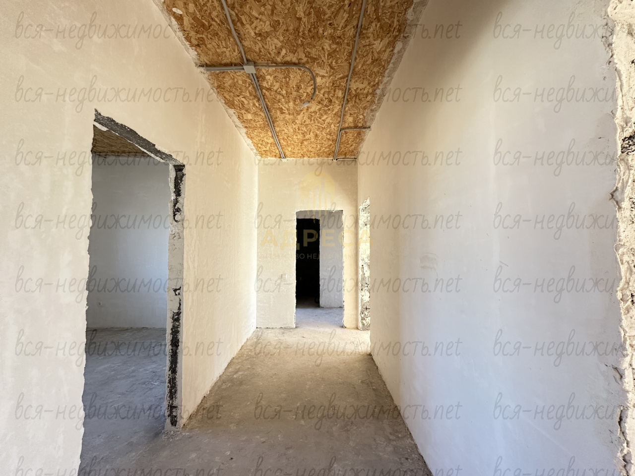 Стены дома внутри отштукатурены и ошпатлеваны.