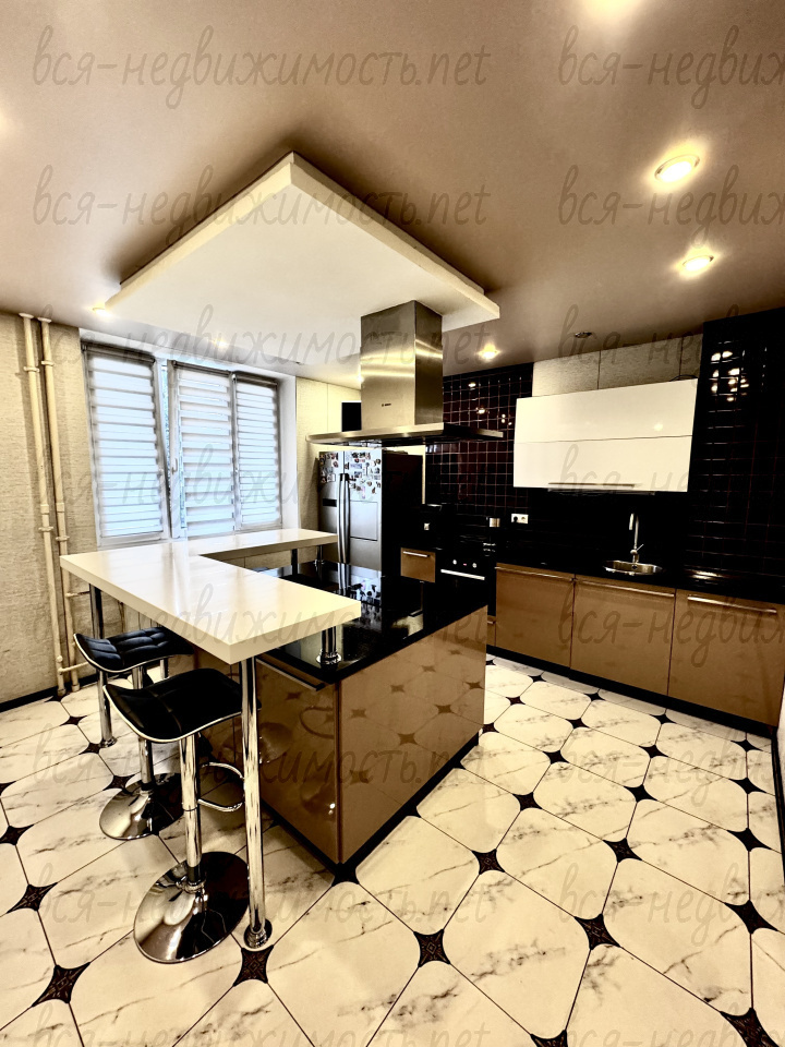 - Кухня: просторная, оборудована всей необходимой техникой, остров вынесен, мощная вытяжка, пол с подогревом, двухкамерный холодильник, посудомоечная машинка...