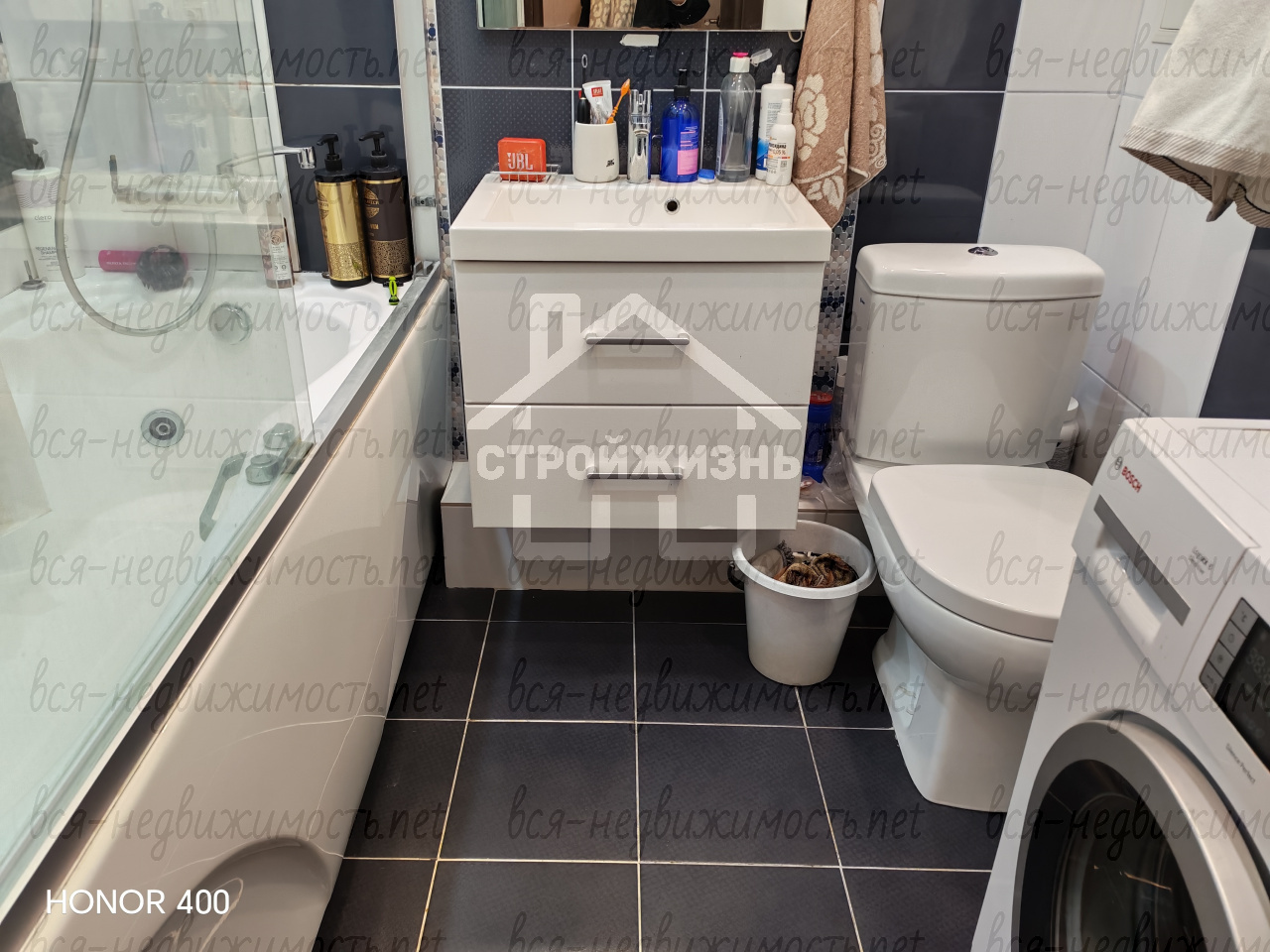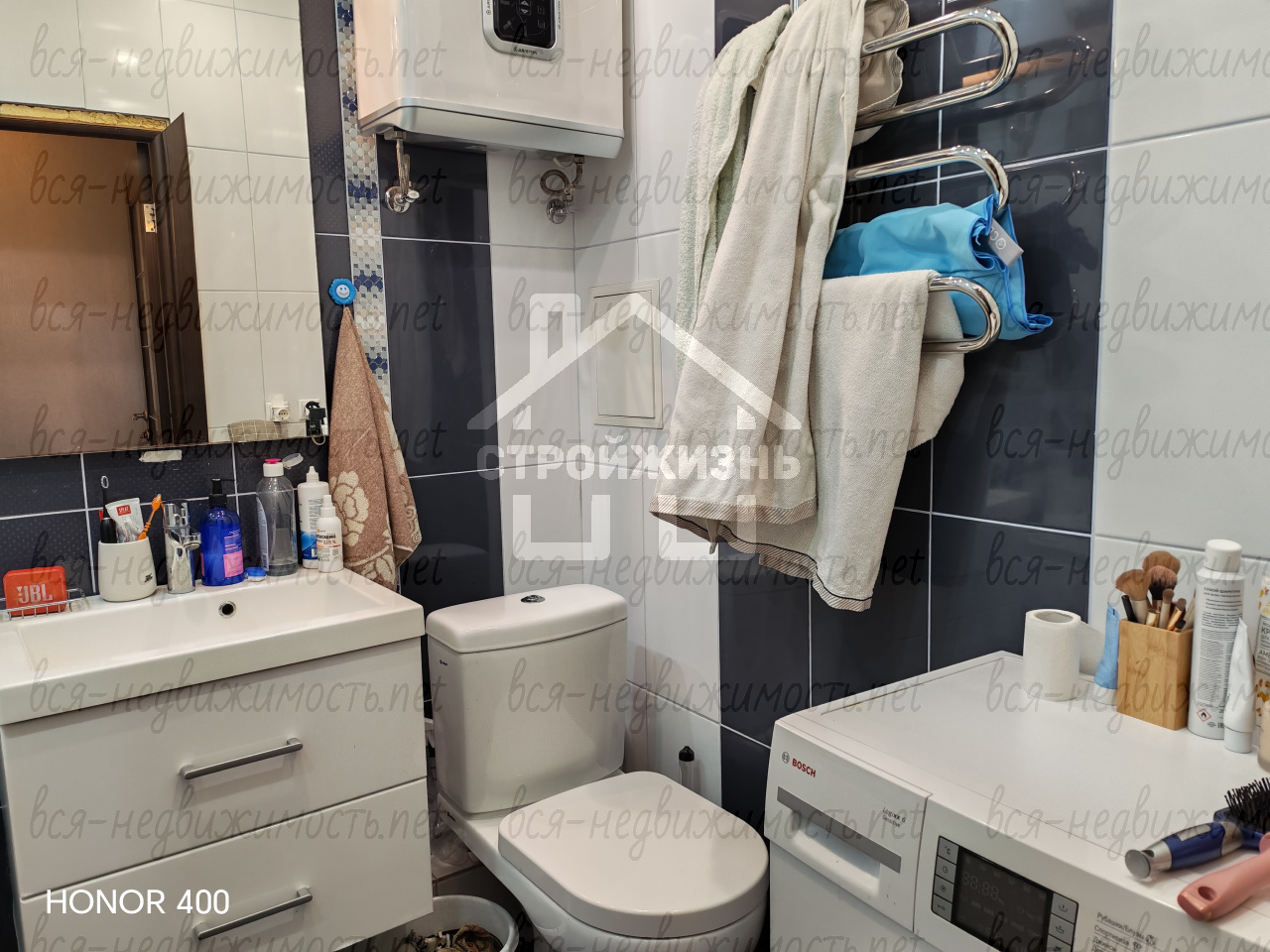 Совмещенная ванна (стиральная машина Bosch, эл. водонагреватель Ariston).