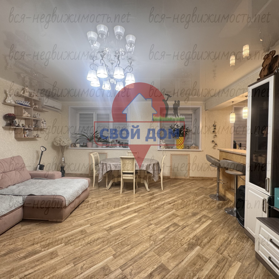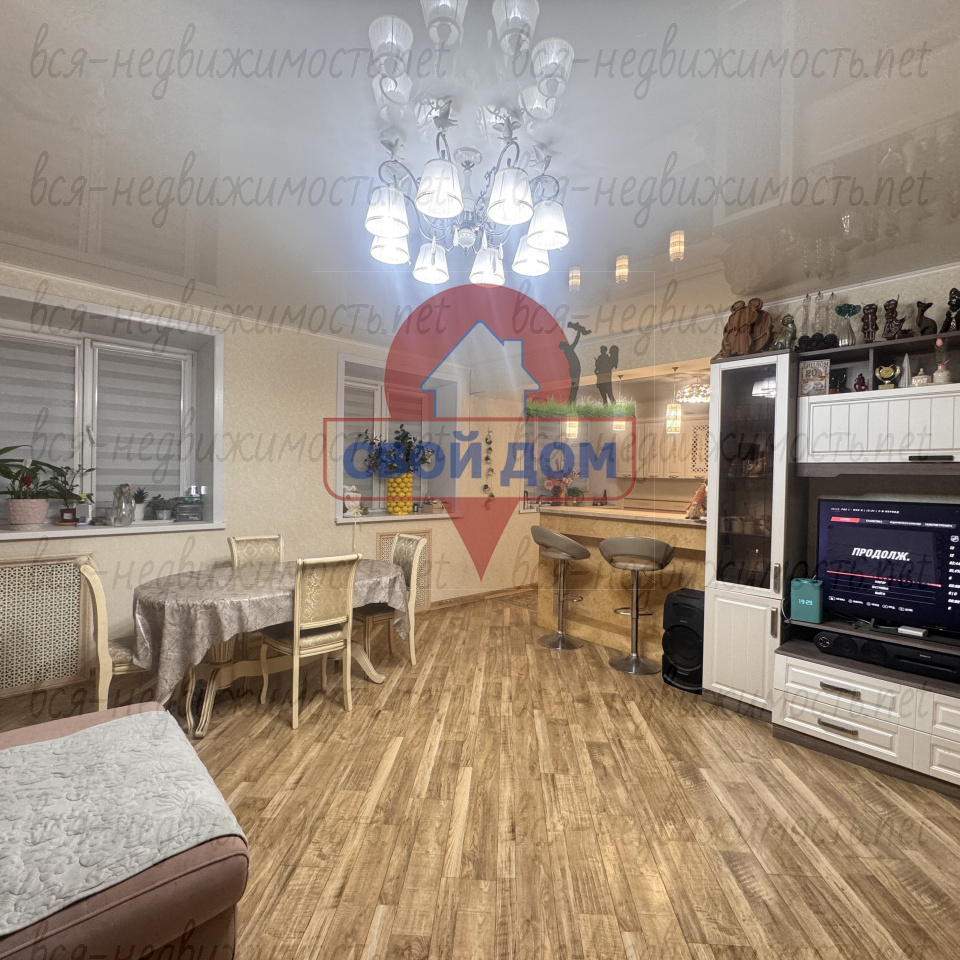 В квартире выполнен качественный ремонт, начиная с замены электропроводки на медную (для каждой комнаты установлены автоматы), выровнены стены, заливной пол, натяжные потолки, новые радиаторы.