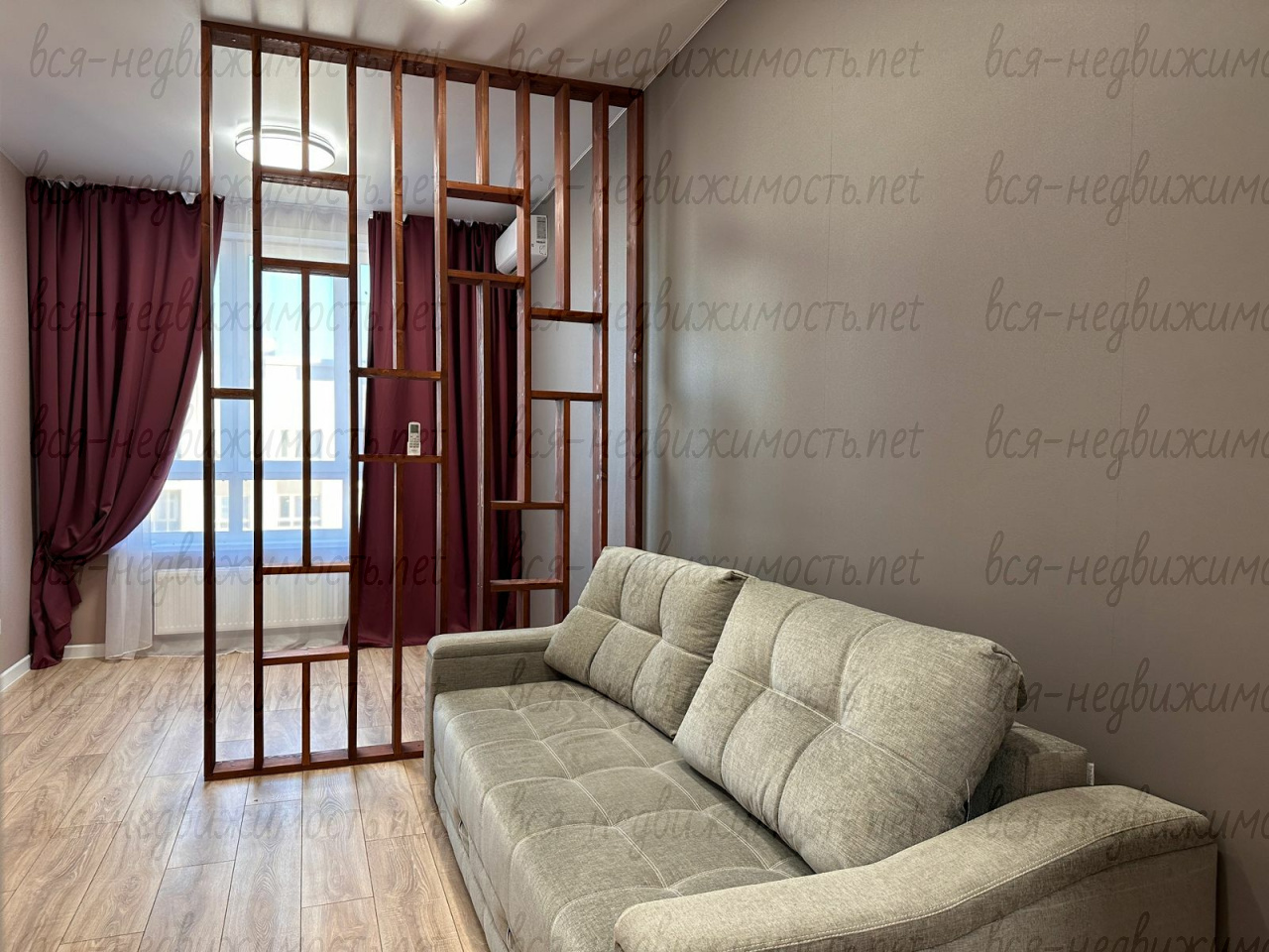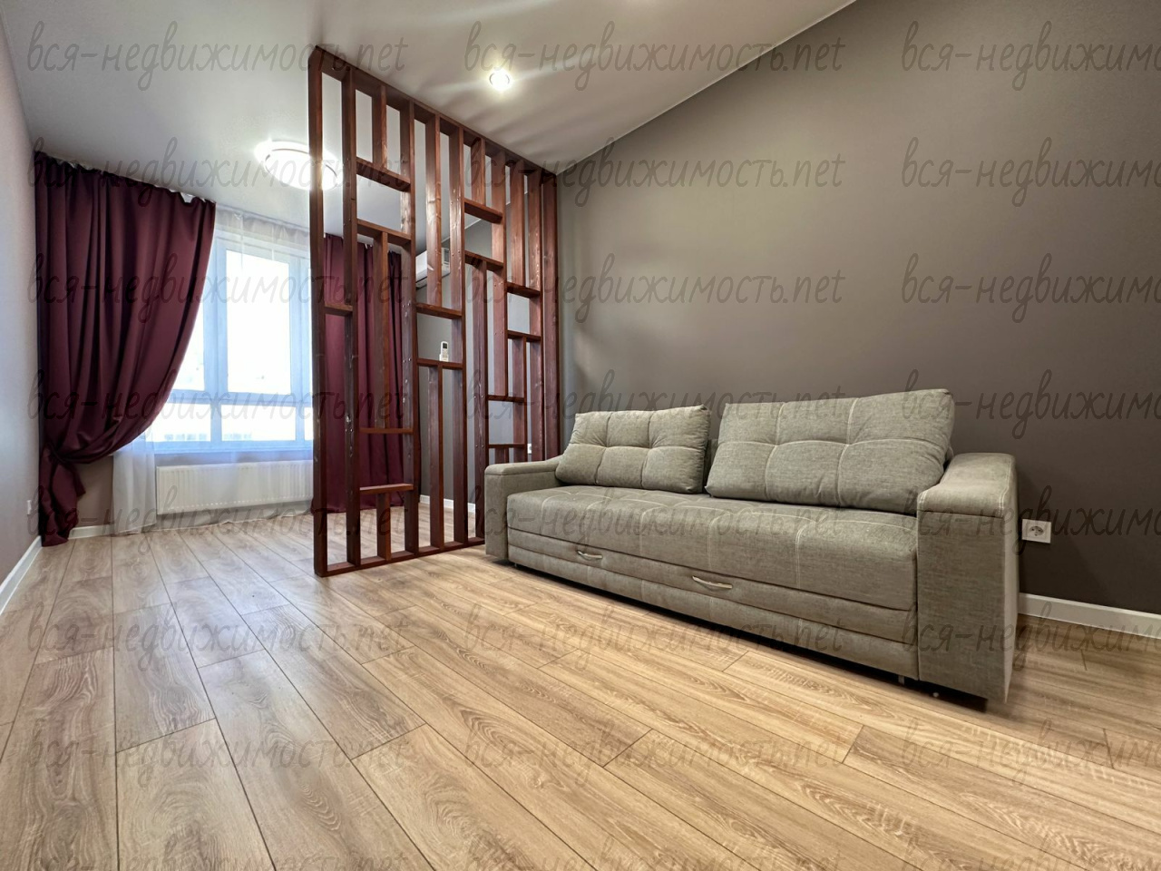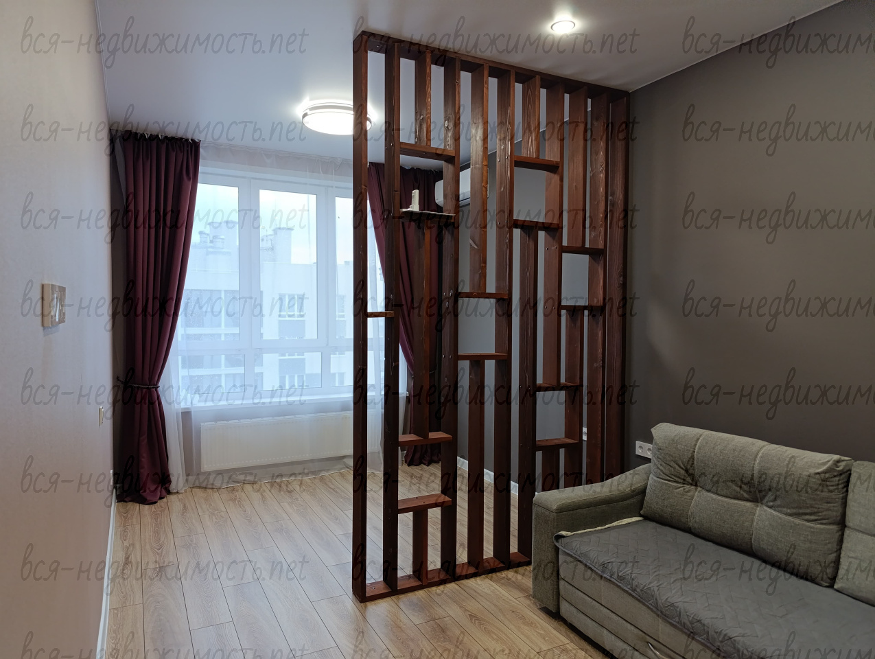 Комната грамотно зонирована на спальню и гостиную