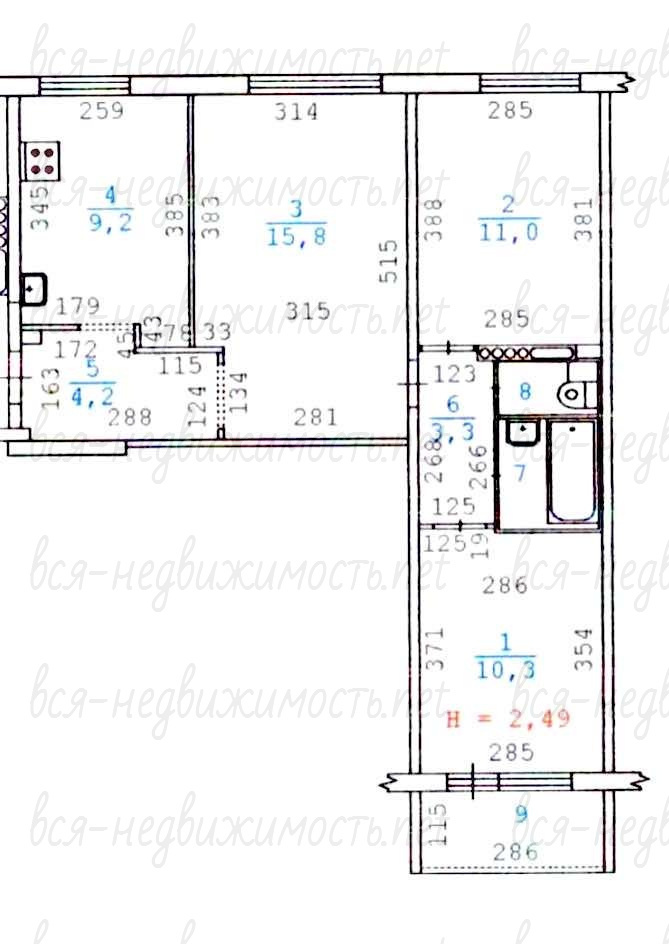 | Площадь кухни: | 9 м2 |