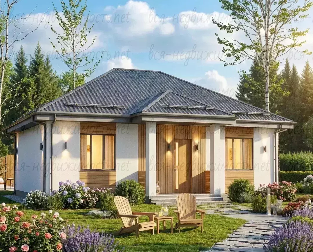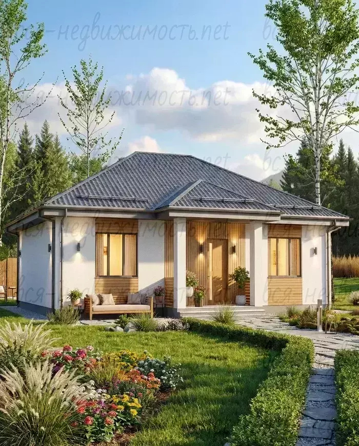 Простор, свет и ощущение защищенности увеличиваются за счет панорамных окон и тщательно подобранных строительных материалов. Дом надежно сохраняет тепло зимой и приятную прохладу летом, респектабельный внешний вид и уютная терраса с крыльцом, подчеркивающим характер хозяев.
