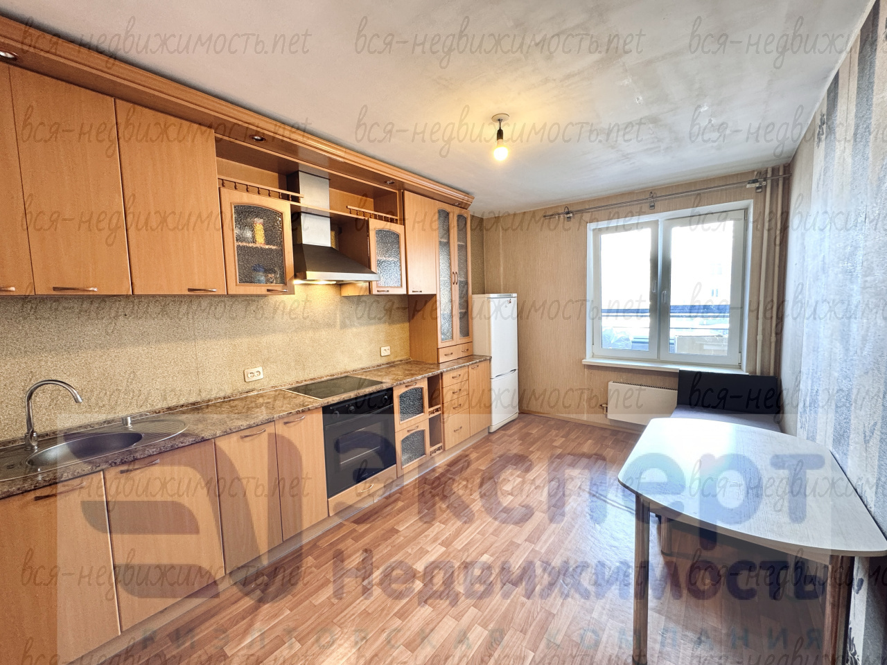 В квартире остаётся кухонный гарнитур со встроенной техникой, кондиционер в комнате.