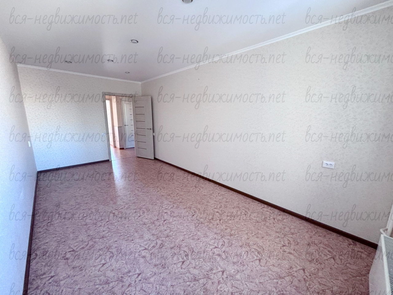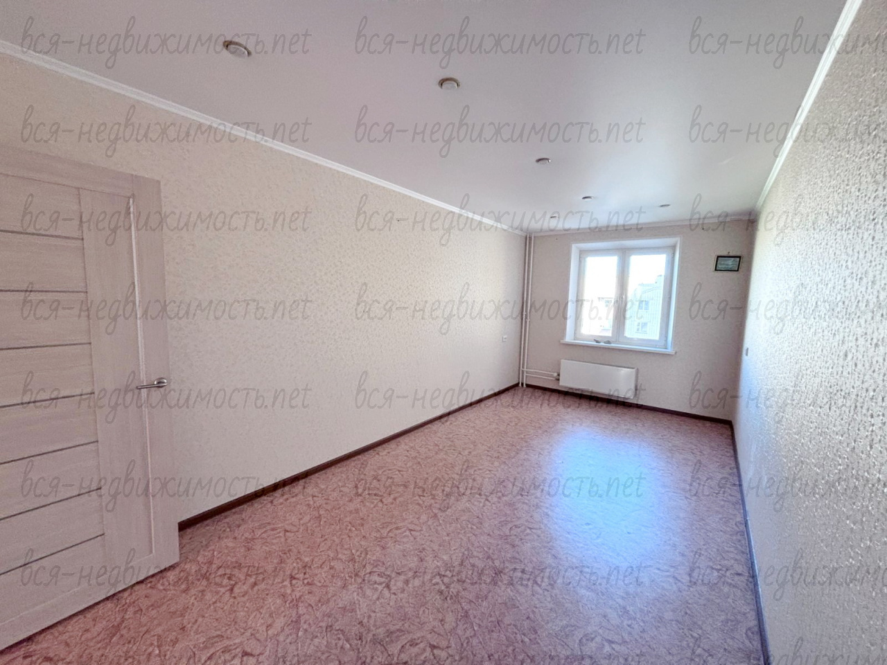 Полы заливные, ровные. На полу линолеум.