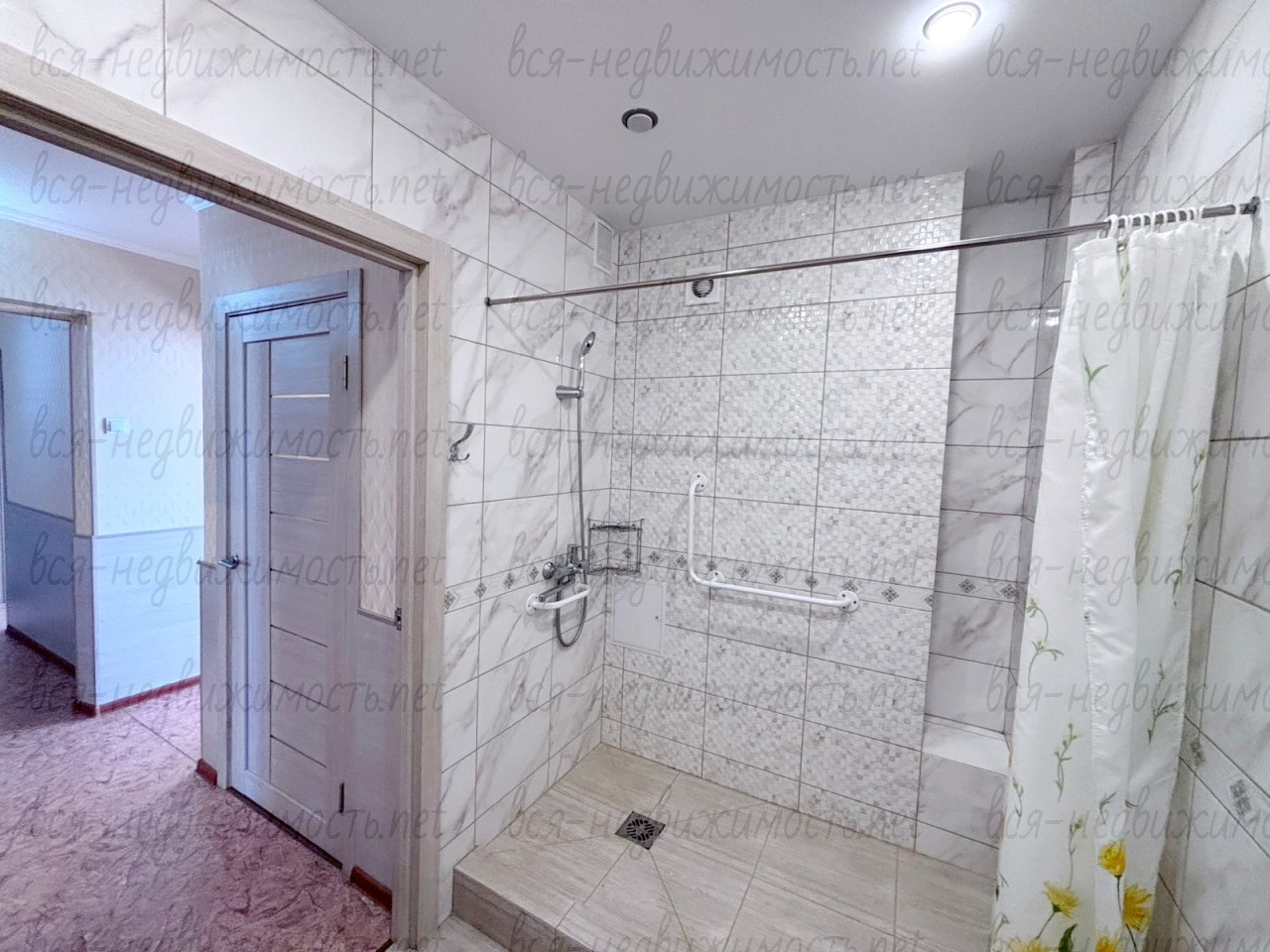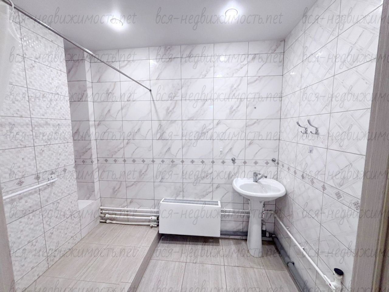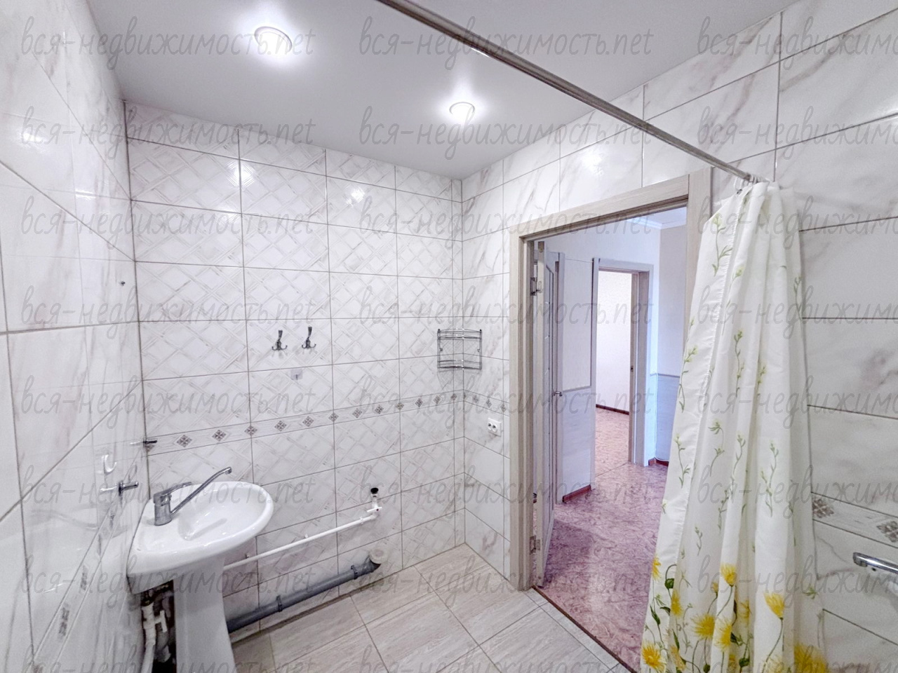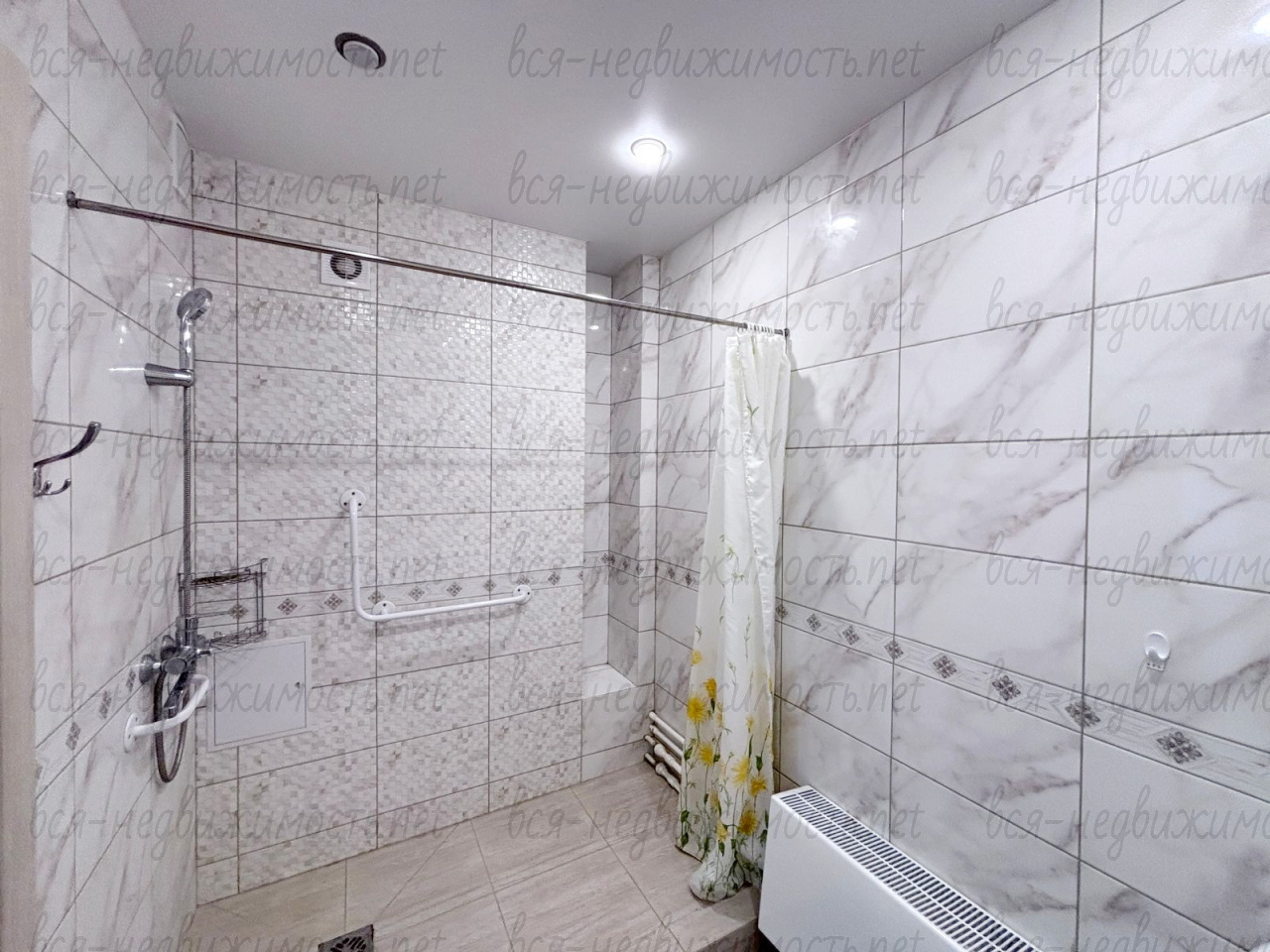 Ванная комната отделана современным кафелем.