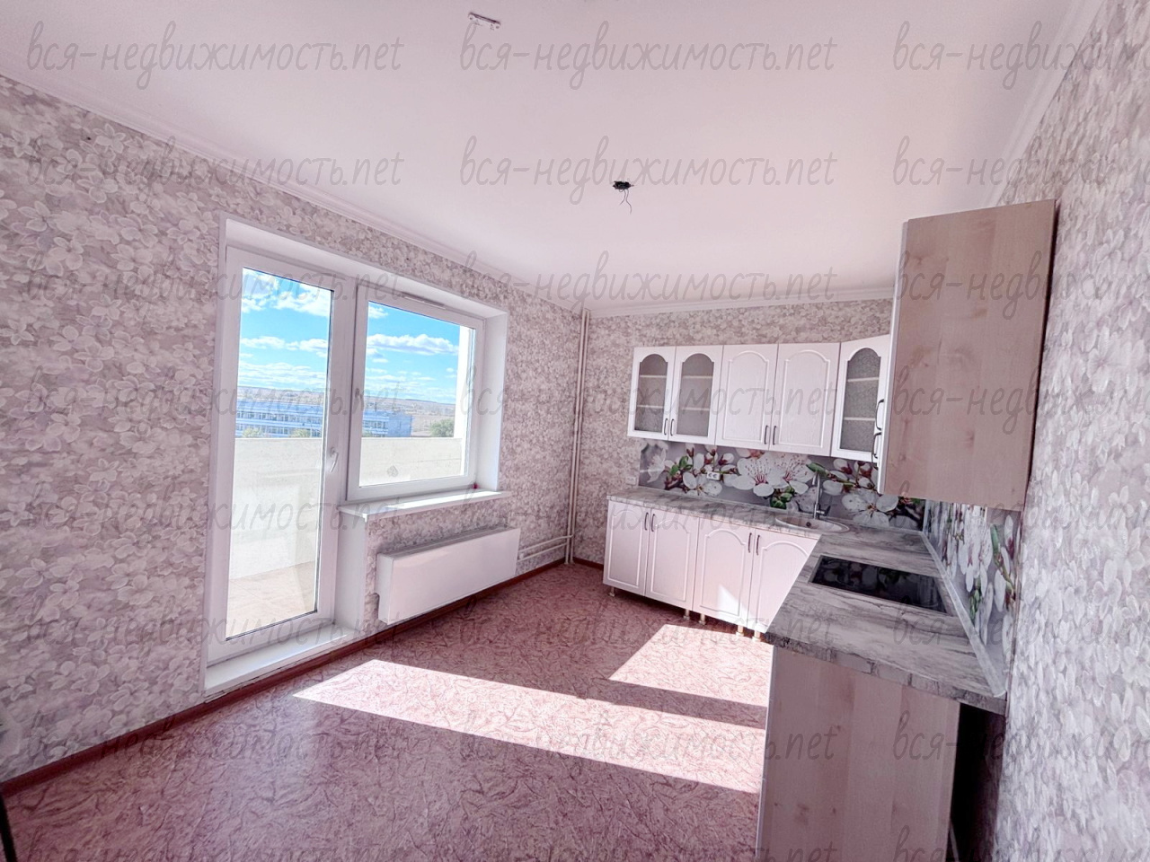 Установлен новый кухонный гарнитур и оборудован варочной поверхностью и встроенным духовым шкафом.