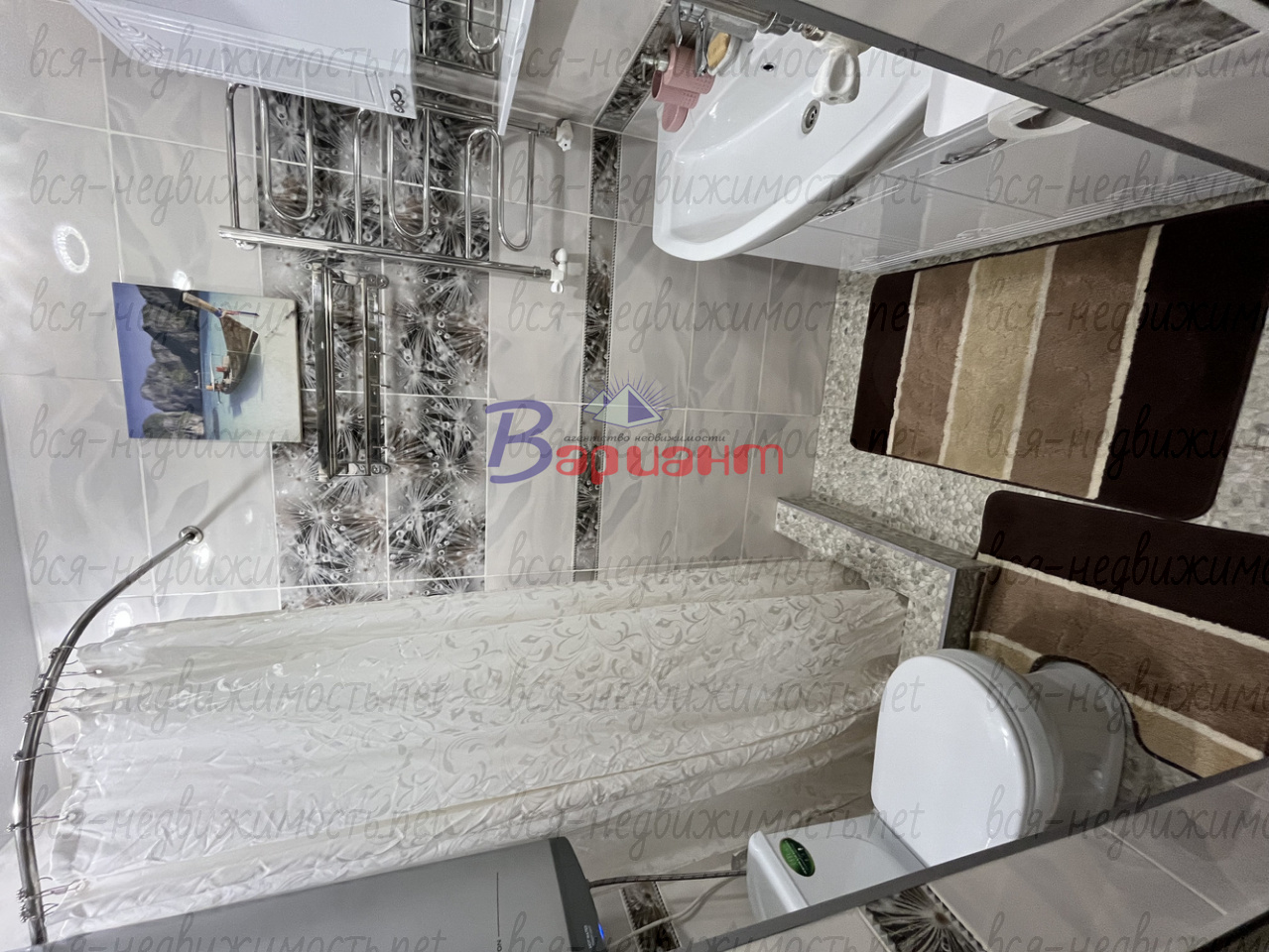 5️⃣Санузел совмещенный, весь в кафеле. Душевой поддон, новый хромированный полотенцесушитель и вся сантехника.