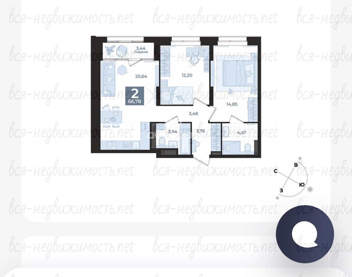 | Санузел: | Раздельный |
