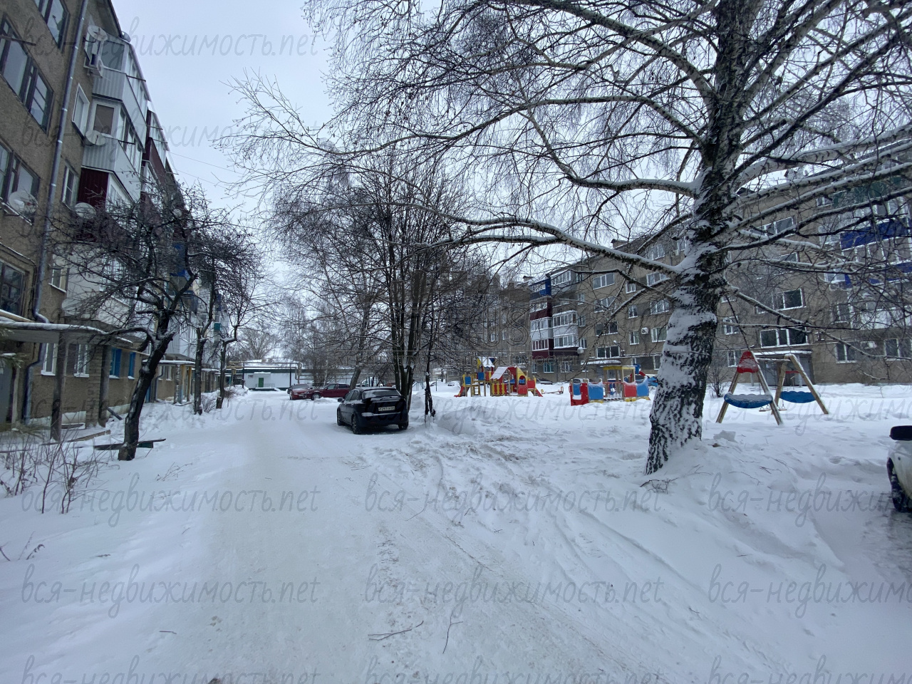 Ухоженный двор с детской площадкой.