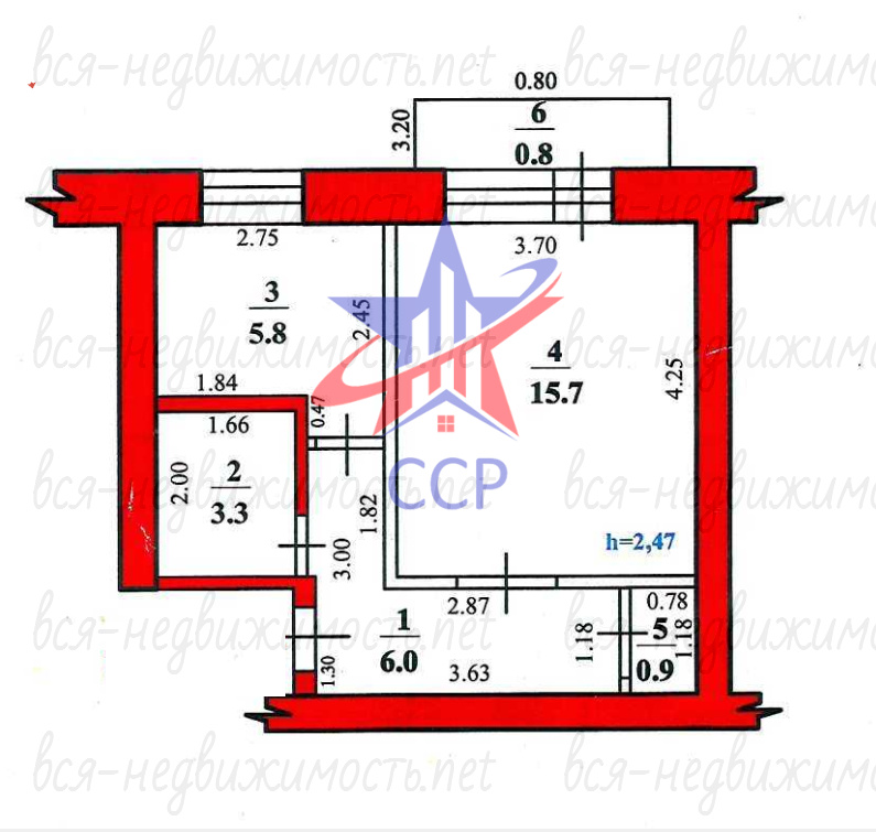 | Площадь кухни: | 6 м2 |