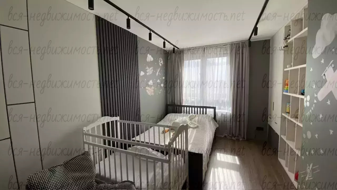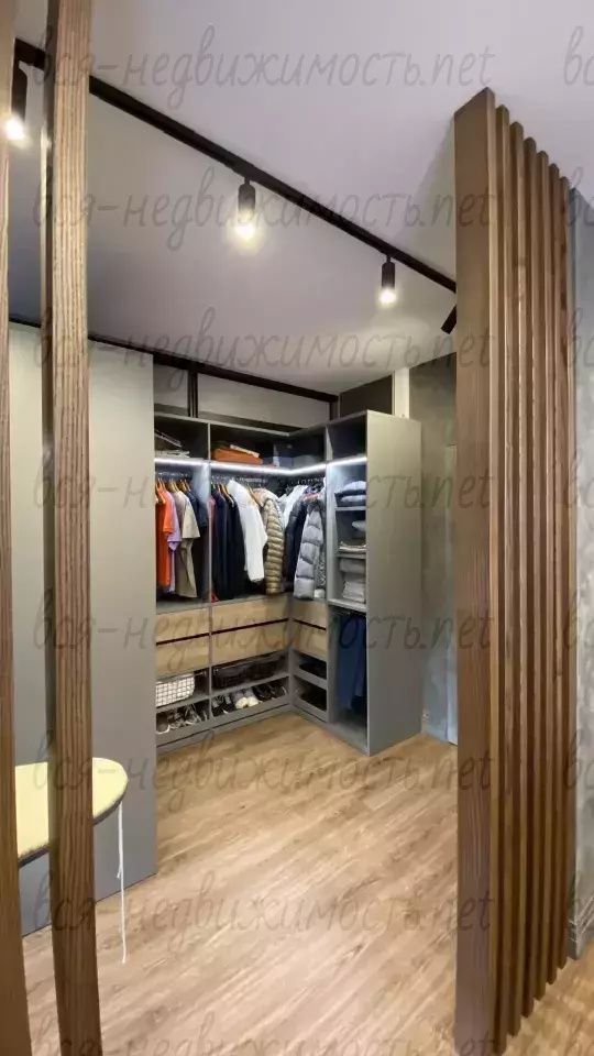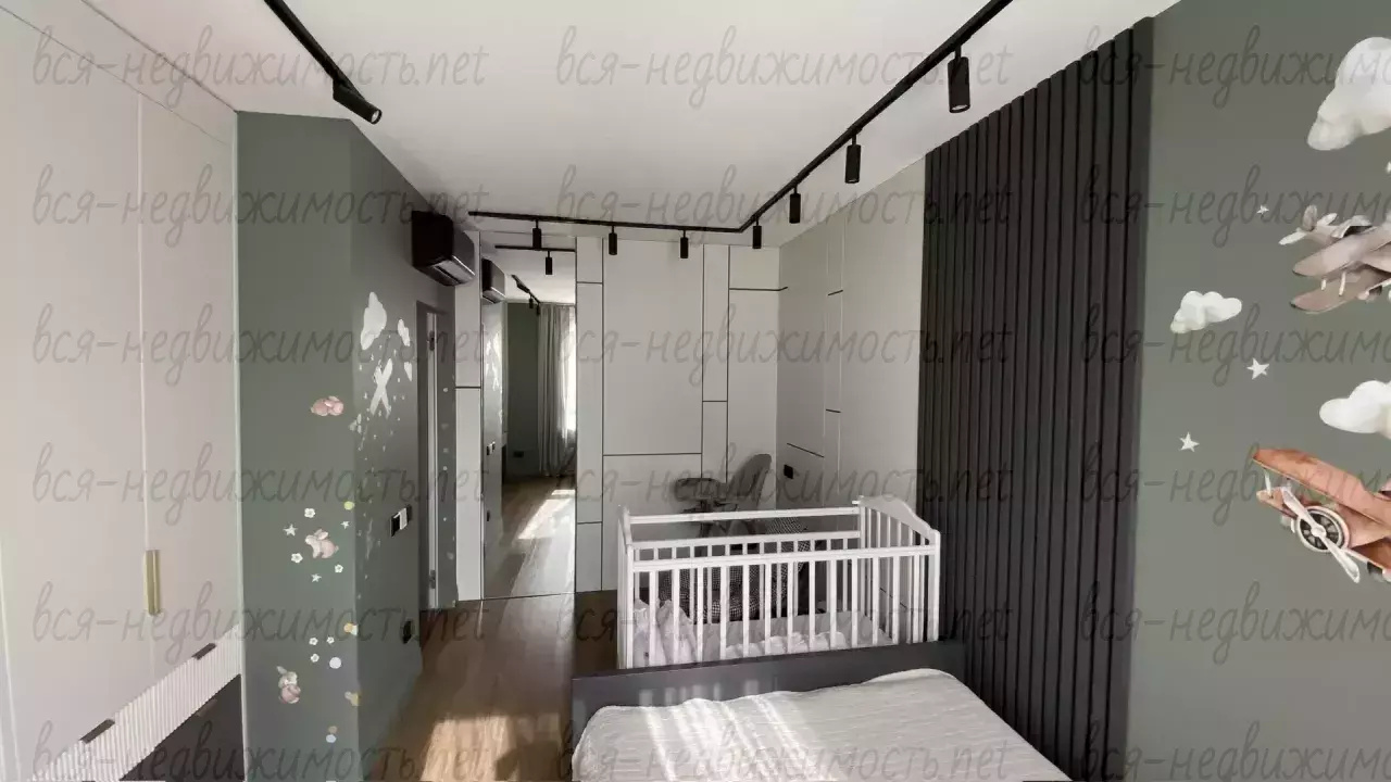 В квартире удобная планировка для комфортного проживания семьи: просторная кухня-гостинная, спальня с гардеробной и санузлом, детская, кабинет, общий санузел и постирочная.