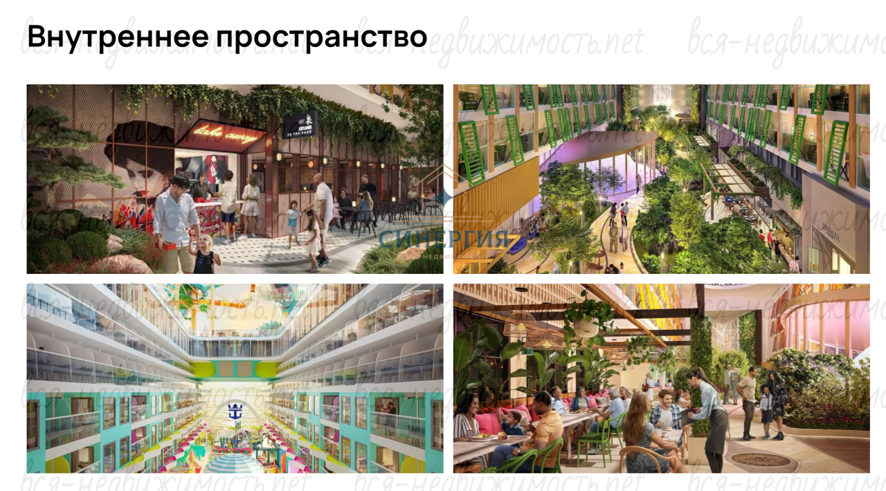 Уникальная концепция комплекса с развлекательными площадками, рестораны, кафе, бассейны, горки и аттракционы для всех возрастов