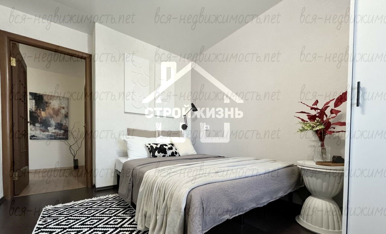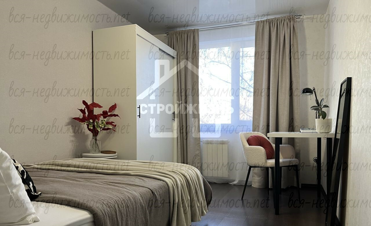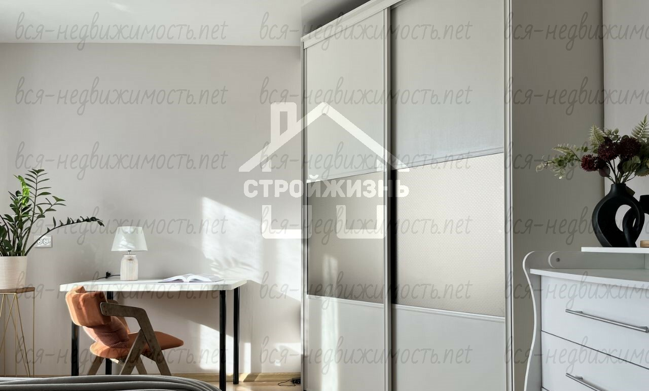 3. Мебель: 2 двуспальные кровати, 2 письменных стола и мягкие стулья, 2 настольные лампы, 2 шкафа купе, комод, обувница, 2 прикроватные тумбы, зеркала во всех помещениях.