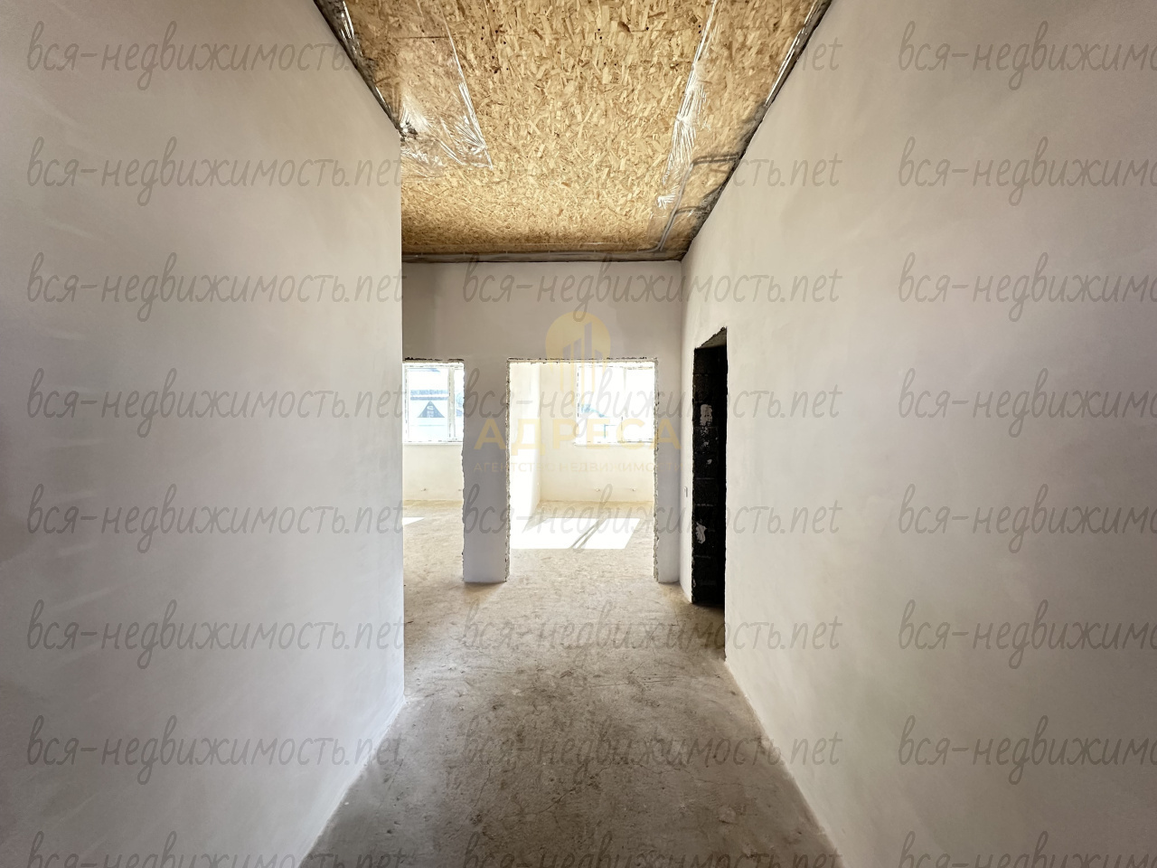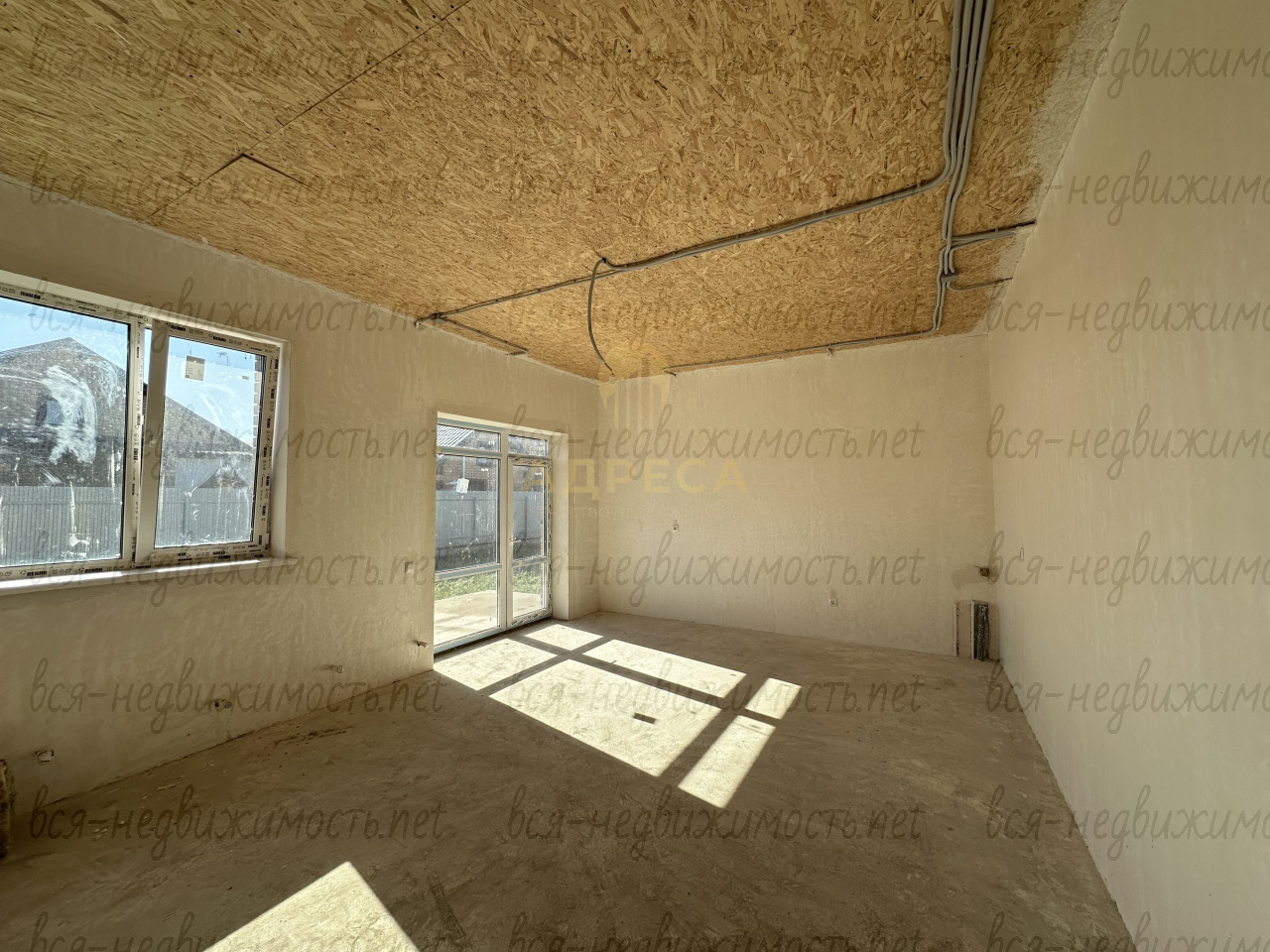 Стены дома внутри отштукатурены и ошпатлеваны.