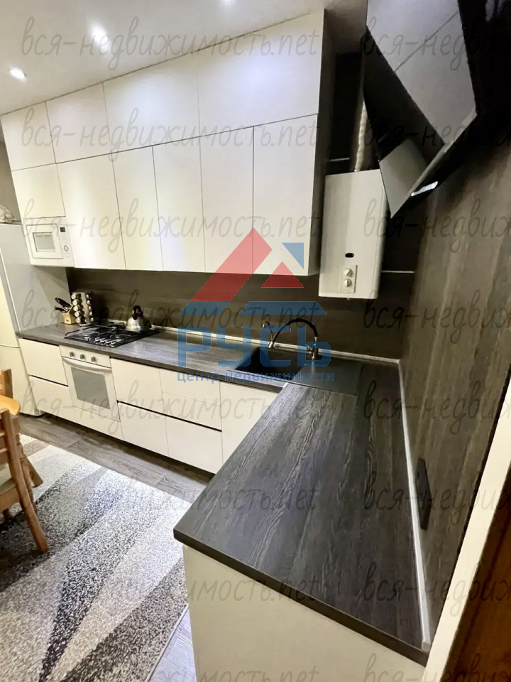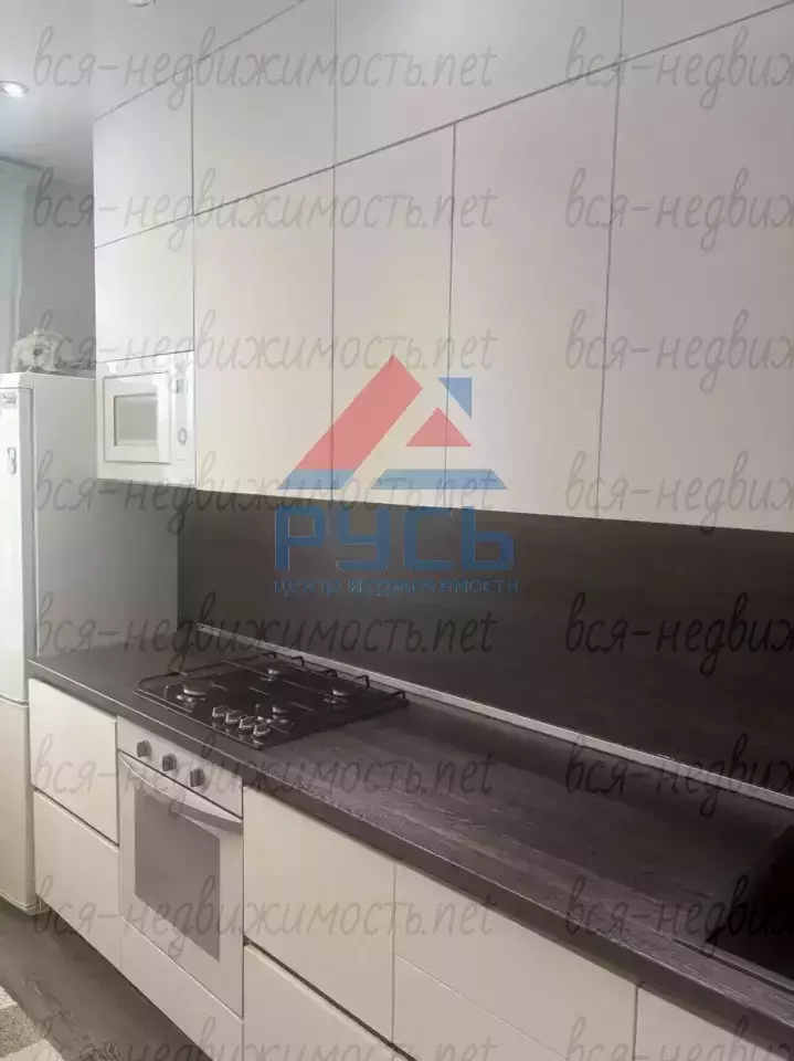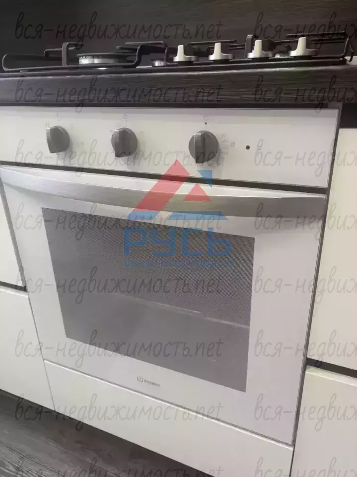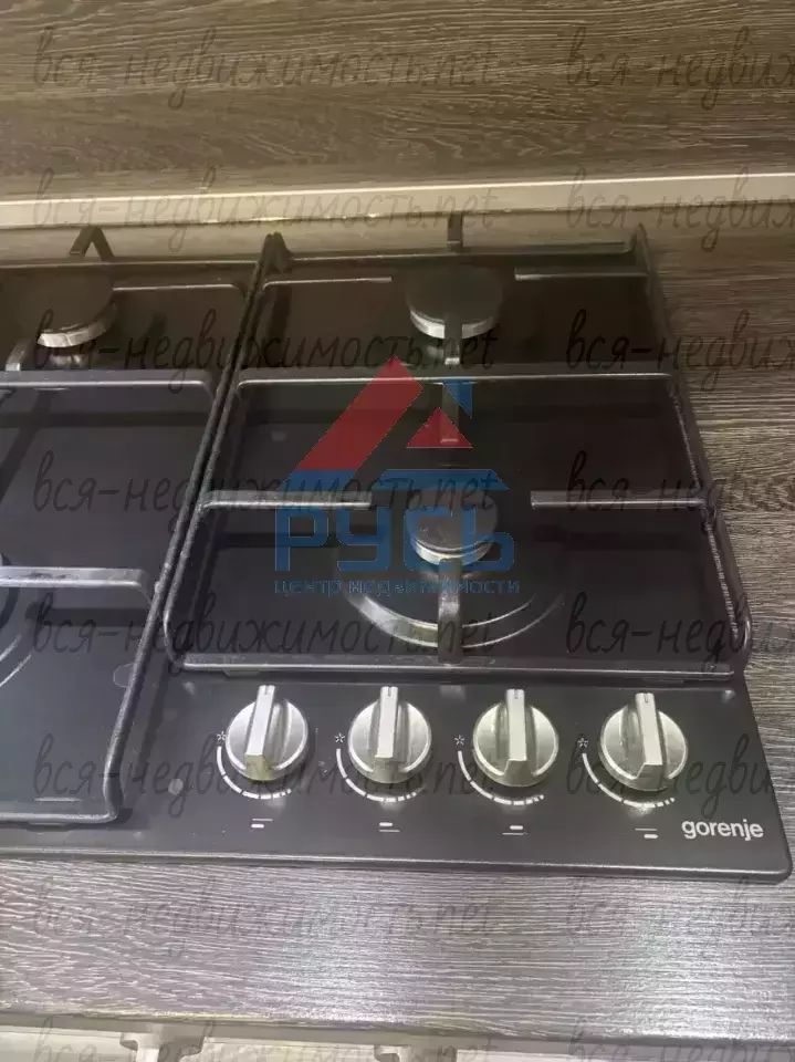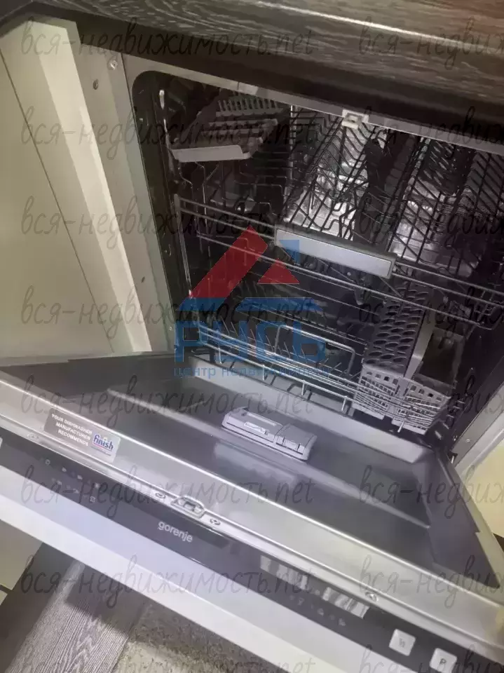 Кухня полностью оборудована гарнитуром, и техникой: газовая панель, духовой шкаф, посудомоечная машина, вытяжка и микроволновая печь.