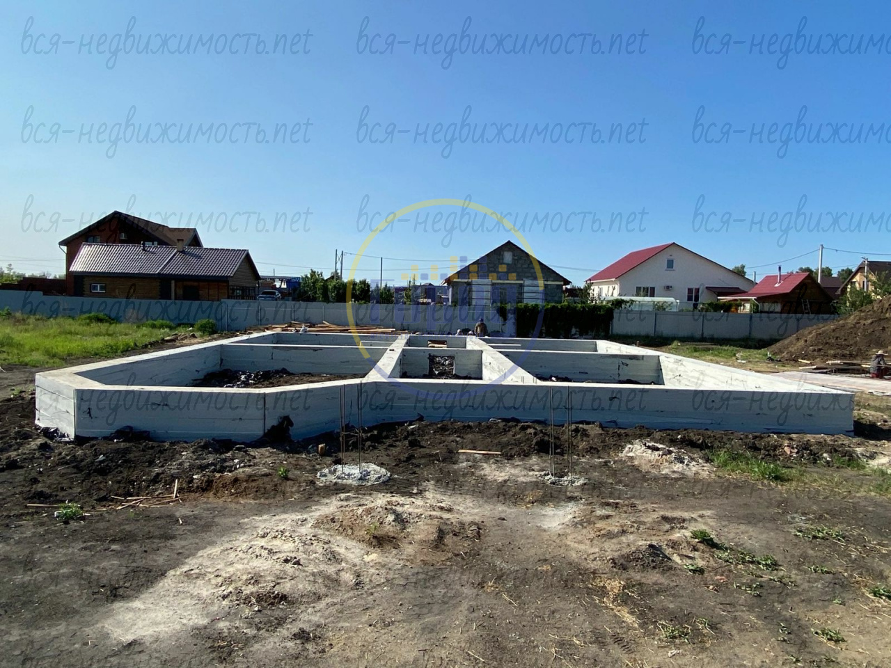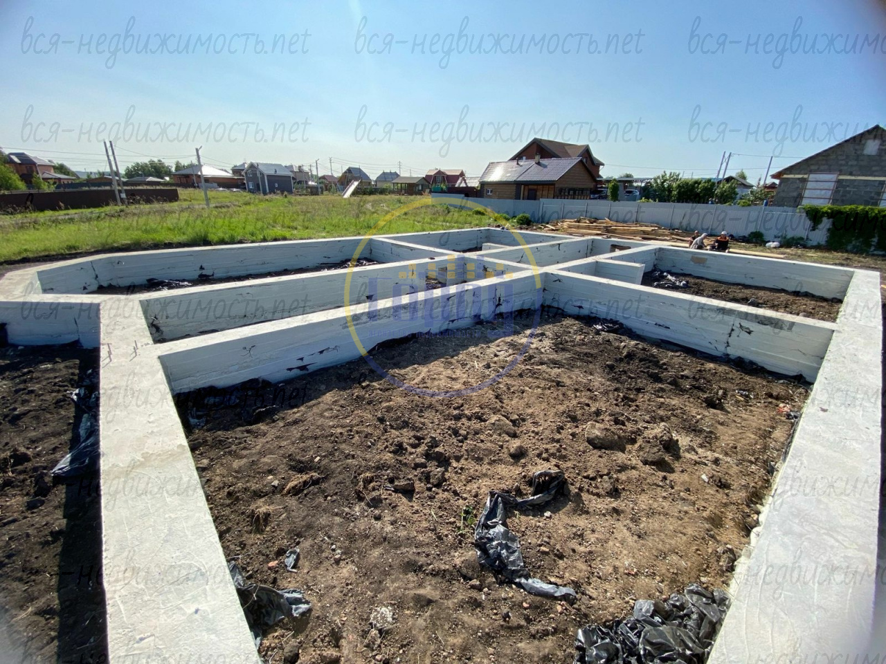 На территории имеется фундамент под дом на 180 кв.м.