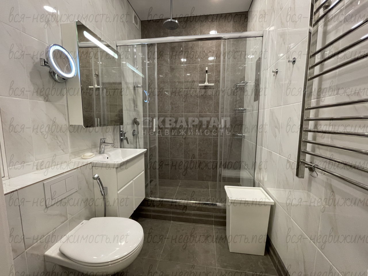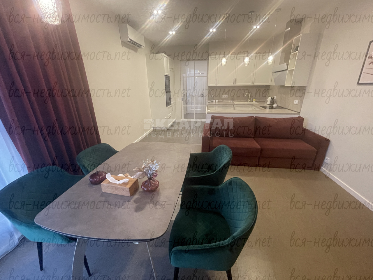 ? Телевизор большой диагонали SONY, Посудомоечная и стиральная машина – фирмы Haer. СВЧ и духовка ” NEFF ”. Холодильник фирмы : Whirlpool(самый широкий в своем классе ).Варочная панель индукция – фирмы Bosch. Вытяжка ELICA. В гостиной электрокамин . В гостиной кондиционер фирмы "Mitsubishi", в спальне кондиционер фирмы "Haer". В детской комнате кондиционера нет. Не солнечная сторона.