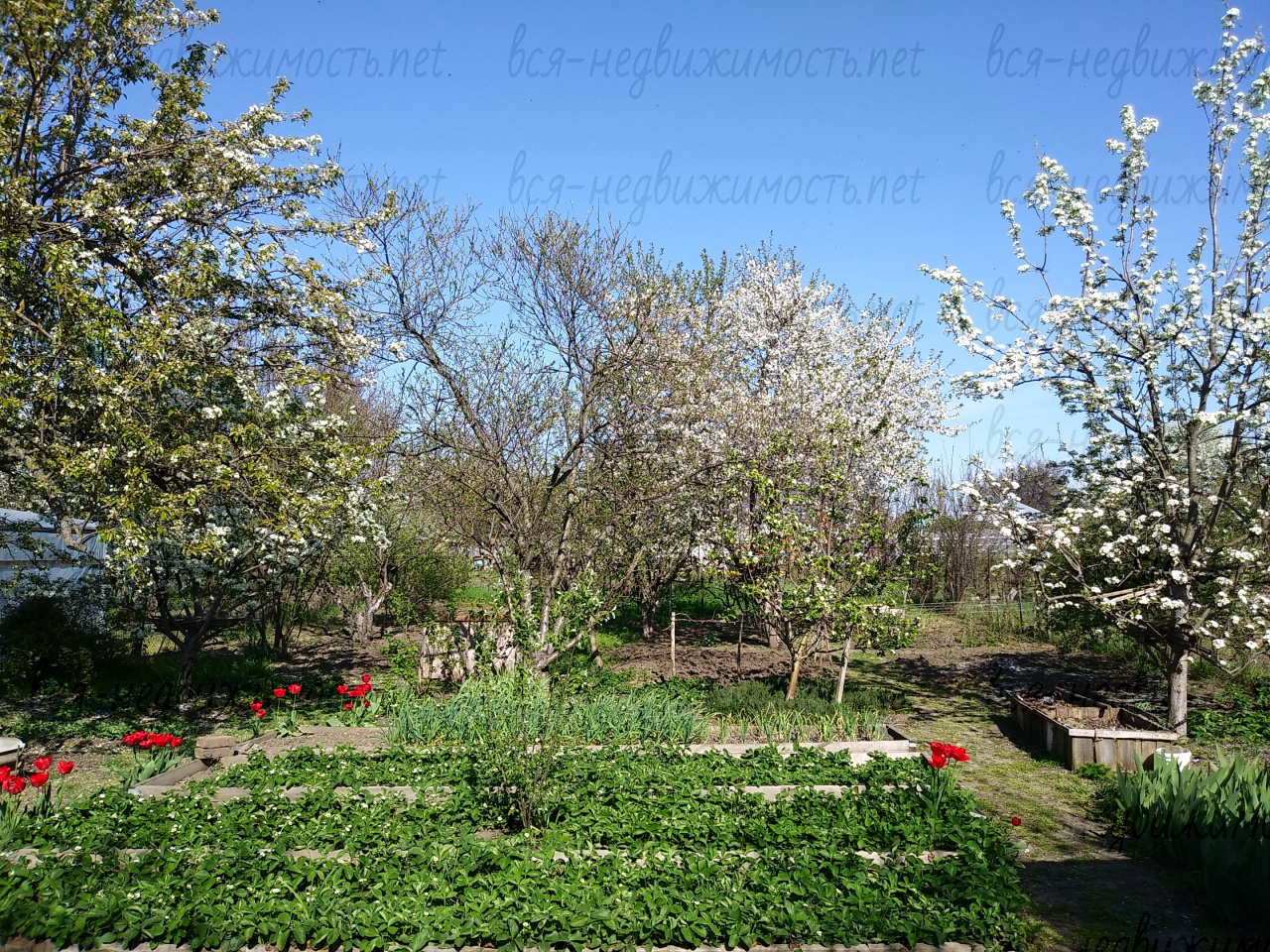 Замечательный сад со множеством плодоносящих деревьев,