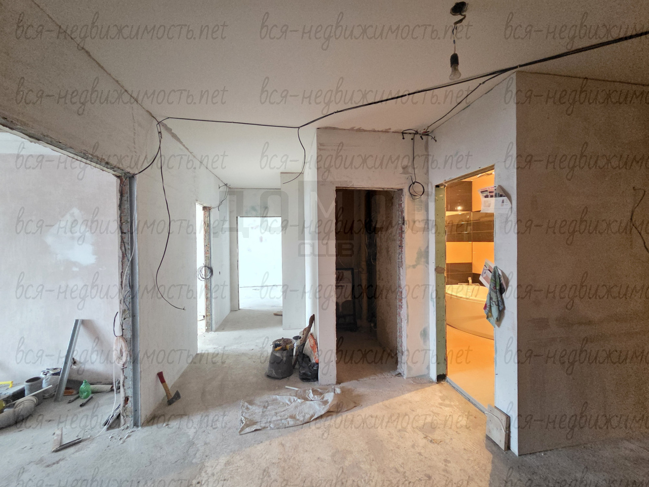 По квартире разведена электрика. Окна — пластиковые стеклопакеты. Квартира в предчистовой готовности: стены выровнены и оштукатурены, выполнена качественная стяжка пола.
