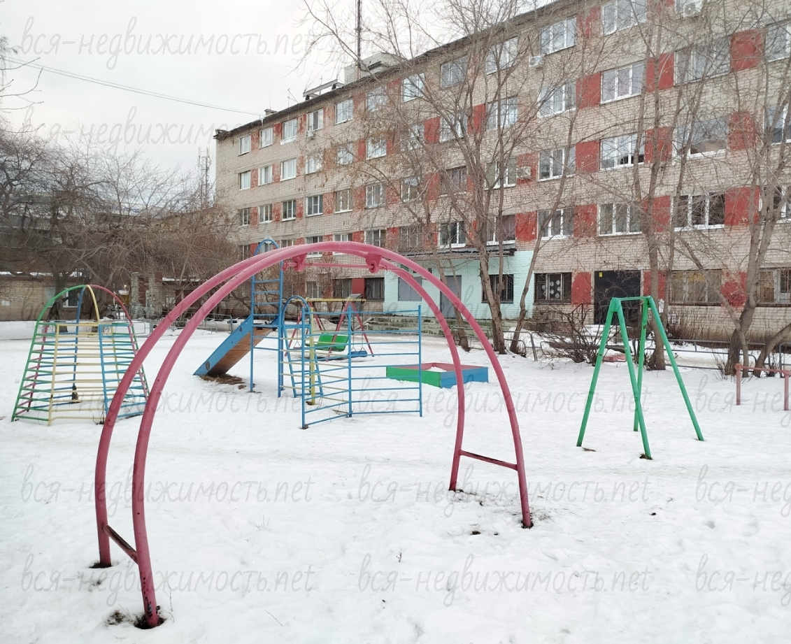 Во дворе детская площадка. Имеются парковочные места для автомобилей.